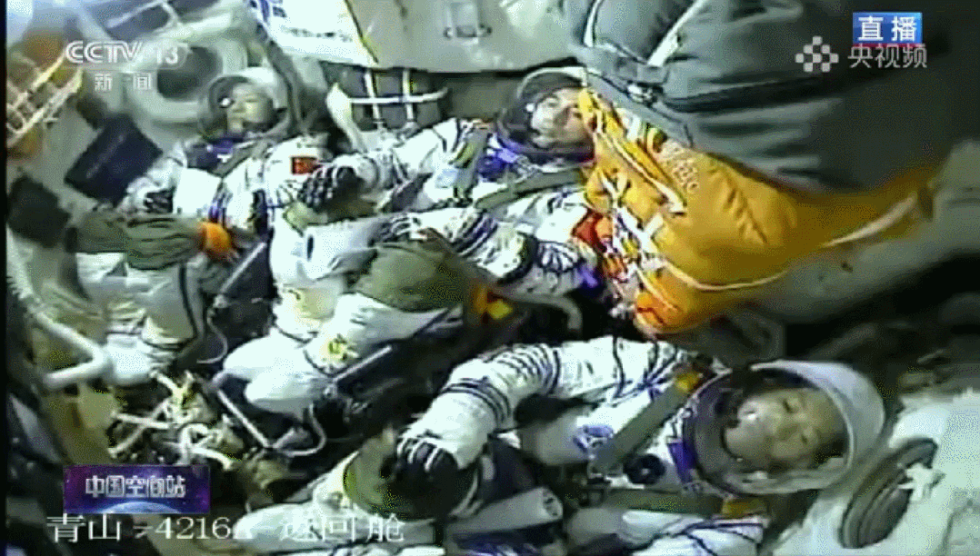 据中国载人航天工程办公室消息,在载人飞船与空间站组合体成功实现自主快速交会对接后,神舟十八号航天员乘组从飞船返回舱进入轨道舱。