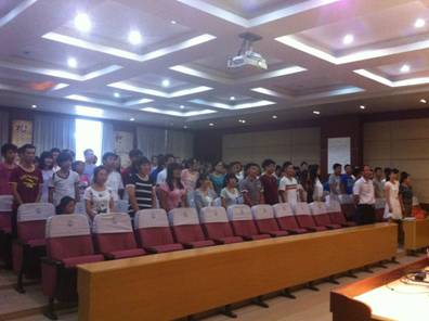 14日晚七点,我系在东教二楼北阶教室召开新生入学教育。全体2013级学生身着军装,精神抖擞,兴致高涨。