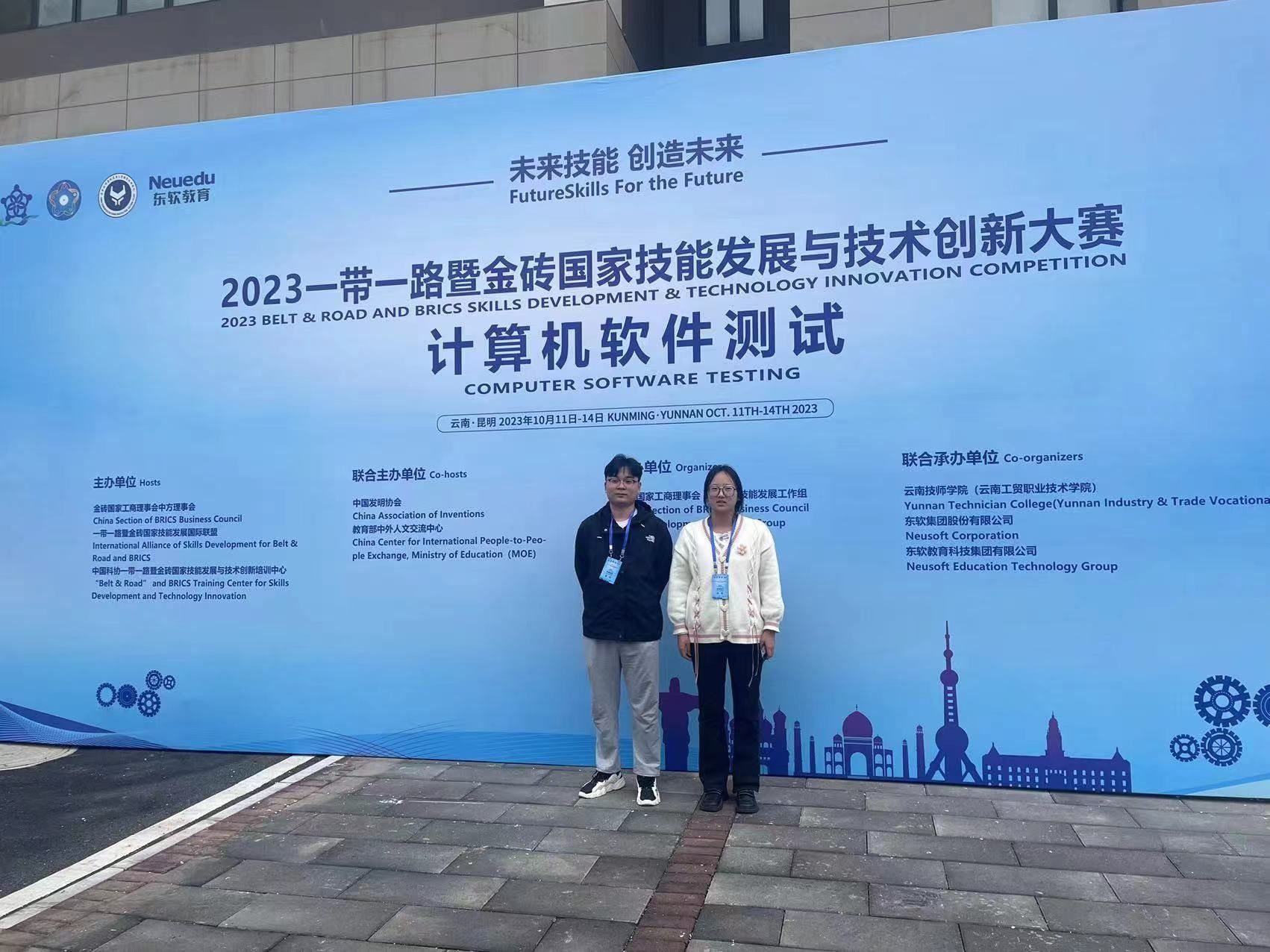 2023年10月11至14日,2023一带一路暨金砖国家技能发展与技术创新大赛之计算机软件测试赛项国内决赛在云南技师学院(云南工贸职业技术学院)举行,共有来自21个省71名选手同台竞技,展现新时代软件技能人才风采,信息工程学院学生曹富强、商敬瑶同学代表pp电子参加比赛。