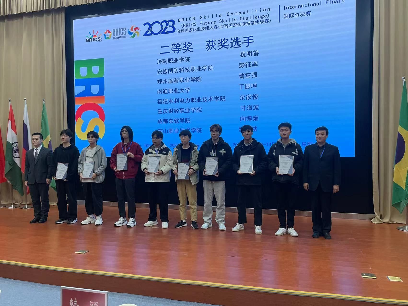 2023年11月10至13日,2023金砖国家职业技能大赛商务软件解决方案赛项国际总决赛在阜阳职业技术学院举办,参赛选手来自中国、泰国、俄罗斯、南非、印度金砖五国,信息工程学院学生曹富强同学代表pp电子参加比赛。