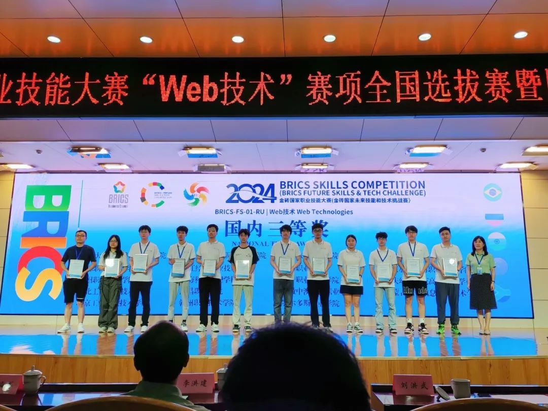 2024年7月21至24日,2024金砖国家职业技能大赛Web技术赛项国内总决赛在济宁职业技术学院举办,信息工程学院学生翟文浩同学代表pp电子参加比赛。本届金砖国家职业技能大赛由俄罗斯技能发展署、俄罗斯战略倡议署和金砖国家工商理事会等单位主办,旨在聚焦高端制造、数字经济、新产业、新业态、新技术等重点领域,提升金砖+国家职业院校师生在创新、协调、组织、合作等方面的能力,丰富金砖+国家职业院校和企业交流与合作内容,培养金砖国家国际化高质量技术技能人才与人文交流人才。信息工程学院领导高度重视此次比赛,科学施训、悉心指导,参赛选手刻苦训练,经过两天激烈角逐,翟文浩同学脱颖而出,斩获三等奖的好成绩。