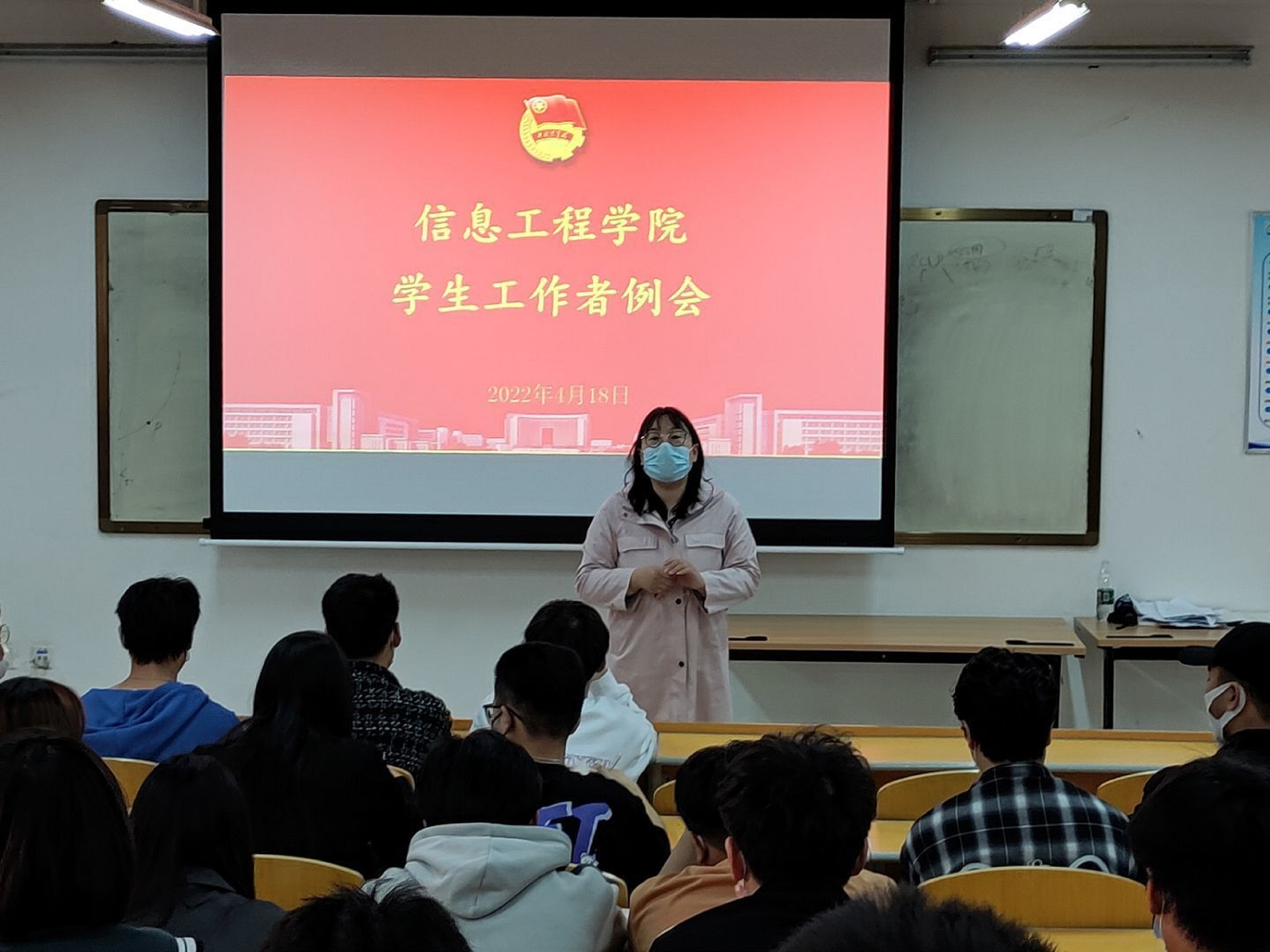 2022年4月18日下午17点10分,信息工程学院在4b111召开学生工作者例会,本次例会由团总支书记李舒主持,学生工作者及学院各班班委参加。