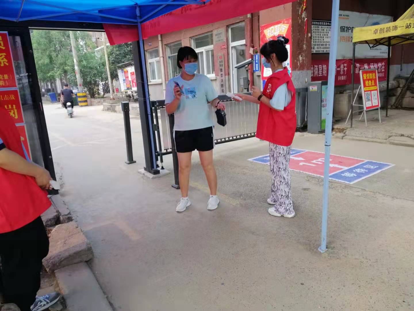 唐子雪同学在洛阳市涧西区发电社区担任志愿者,在社区防疫点为进出人员测量体温,查看洛康码,为来往车辆登记信息,登记控制外来人员进出,尽自己的努力去付出,为社会贡献一份力量。