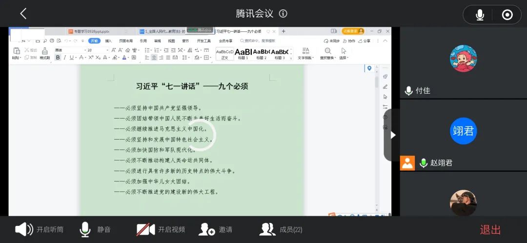 会议最后,学生党支部书记付佳进行会议总结。她强调我们必须坚持中国共产党领导,深刻贯彻习近平总书记的“九个必须”精神,全面加强党的基本建设,为学校的教育工作提供精神动力和组织保障。