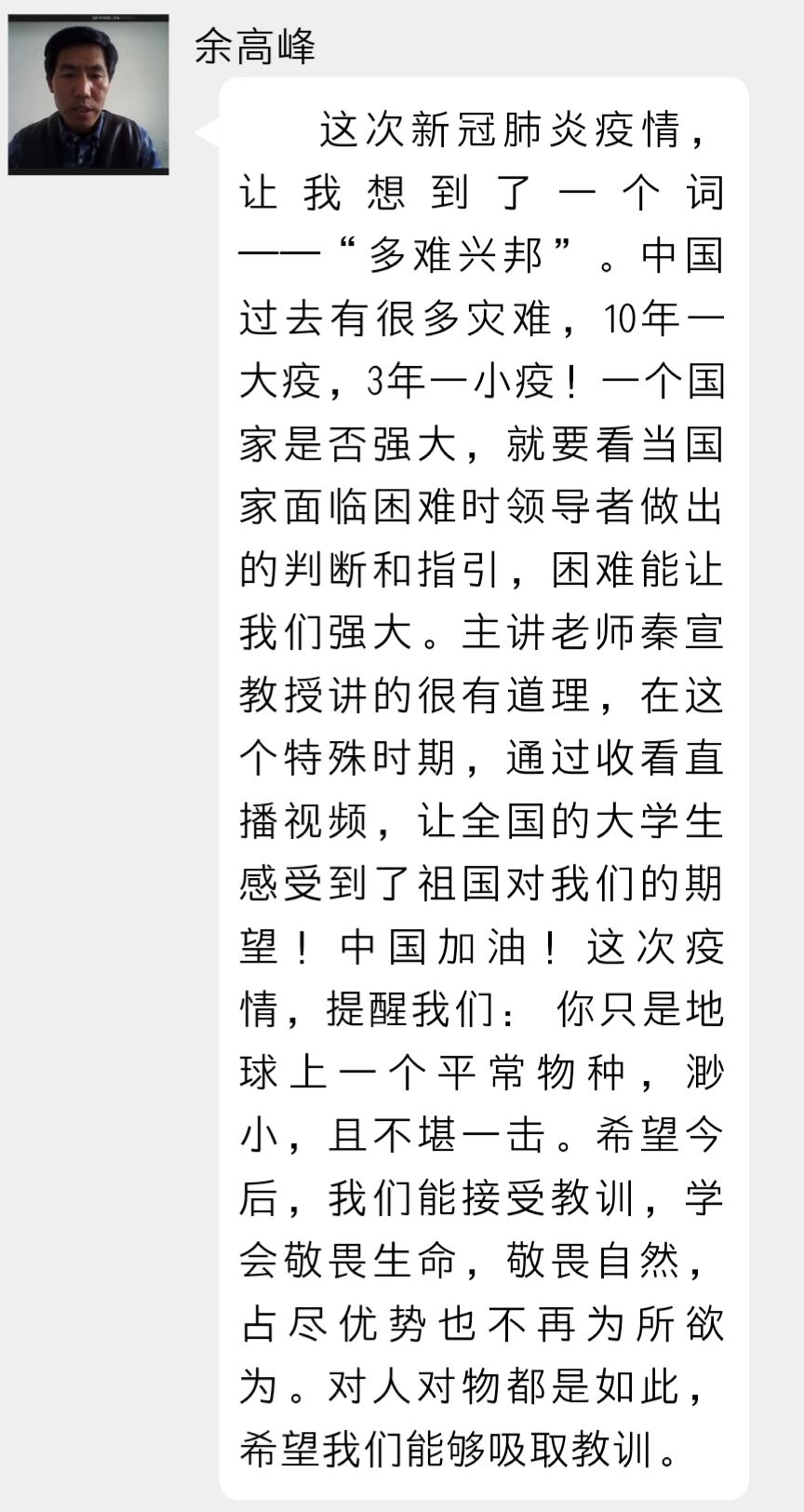 疫情防控工作涌现的感人案例,为思政课提供了丰富、鲜活的素材。在这个特殊时刻,从医务工作者到人民子弟兵,从公安民警到基层干部,从志愿者到快递小哥……14亿中国人万众一心、众志成城,创造了一系列的战“疫”中国速度、中国奇迹。艾四林教授将立足中国抗击疫情的具体实践,引导学生深化对马克思主义基本理论的认识、深化对马克思主义中国化最新成果的认识。