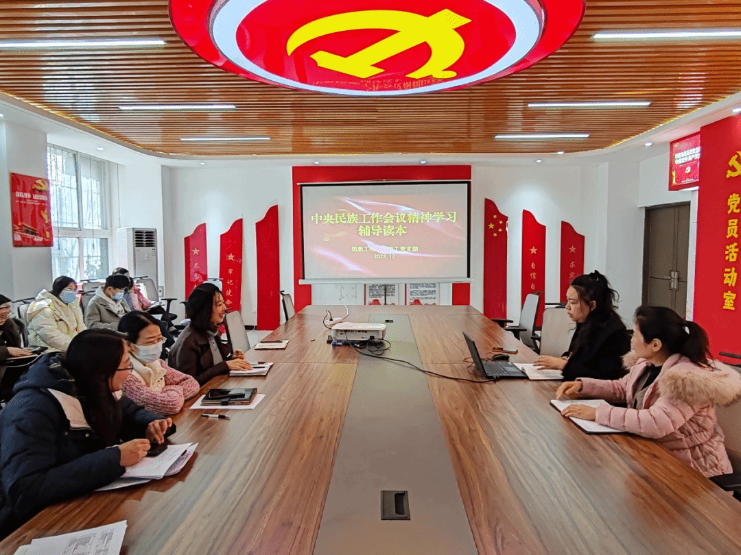 为深入学习贯彻落实党的二十大精神,开展好习近平新时代中国特色社会主义思想主题教育,根据校党委统一部署和要求,我院教工党支部于12月6日在4A103开展党日活动,党总支副书记潘宁领学《中国共产党章程》和《中央民族工作会议精神学习辅导读本》等内容,信息工程学院全体教师参加。