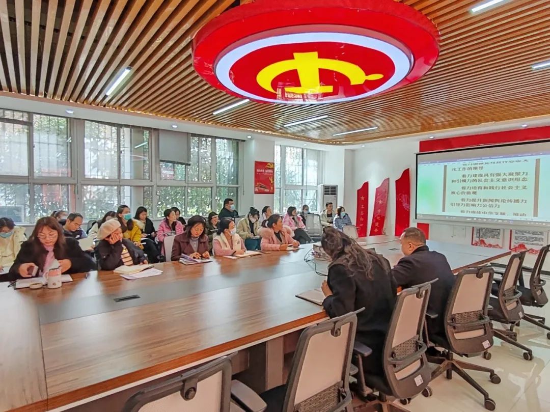 会议开始,周鹏书记从“全国宣传思想文化工作会议精神要点”出发,带领大家学习了习近平总书记在新时代文化建设方面的新思想新观点新论断,强调了“七个着力”的重要意义。习近平文化思想是一个不断展开的开放式的思想体系,必将随着实践深入不断丰富发展。习近平文化思想的提出体现我国更加重视文化发展,将实现人民对美好生活的向往作为新时代文化强国建设的“国之大者”。作为人民教师,我们应当坚持不懈用习近平新时代中国特色社会主义思想凝心铸魂,广泛践行社会主义核心价值观,坚决有效防范化解意识形态风险,促进文化事业和文化产业繁荣发展。