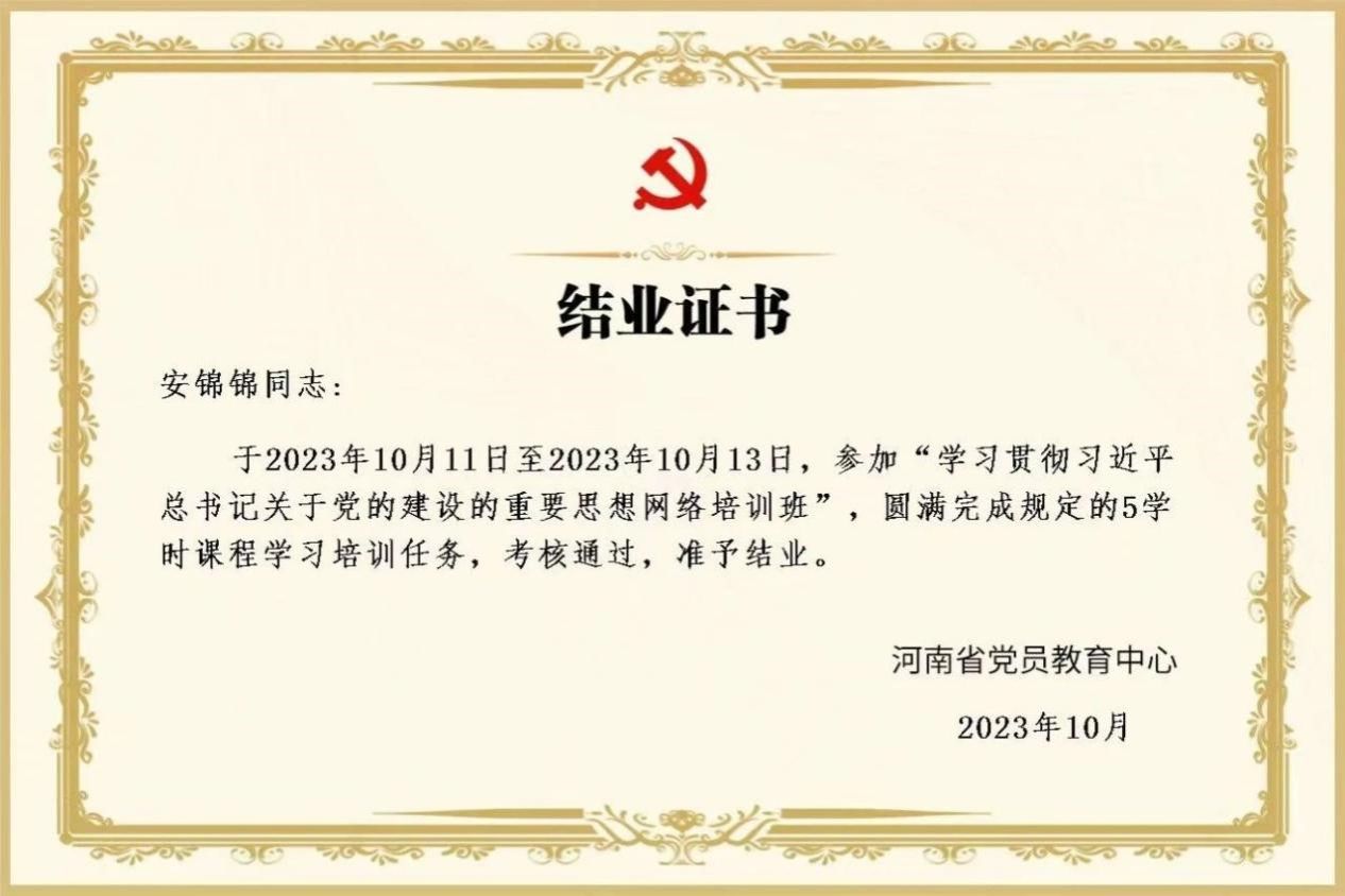 为深入学习贯彻习近平总书记关于党的建设的重要思想,教育引导全体教师党员掌握其科学内涵和实践要求,激发广大党员兴党强党使命感、提振担当作为精气神,我院教工党支部积极响应省委组织部、校党委组织部号召,组织全体教师党员参加河南党员教育“云课堂”(学习贯彻习近平总书记关于党的建设的重要思想网络培训班),并考核学习情况。