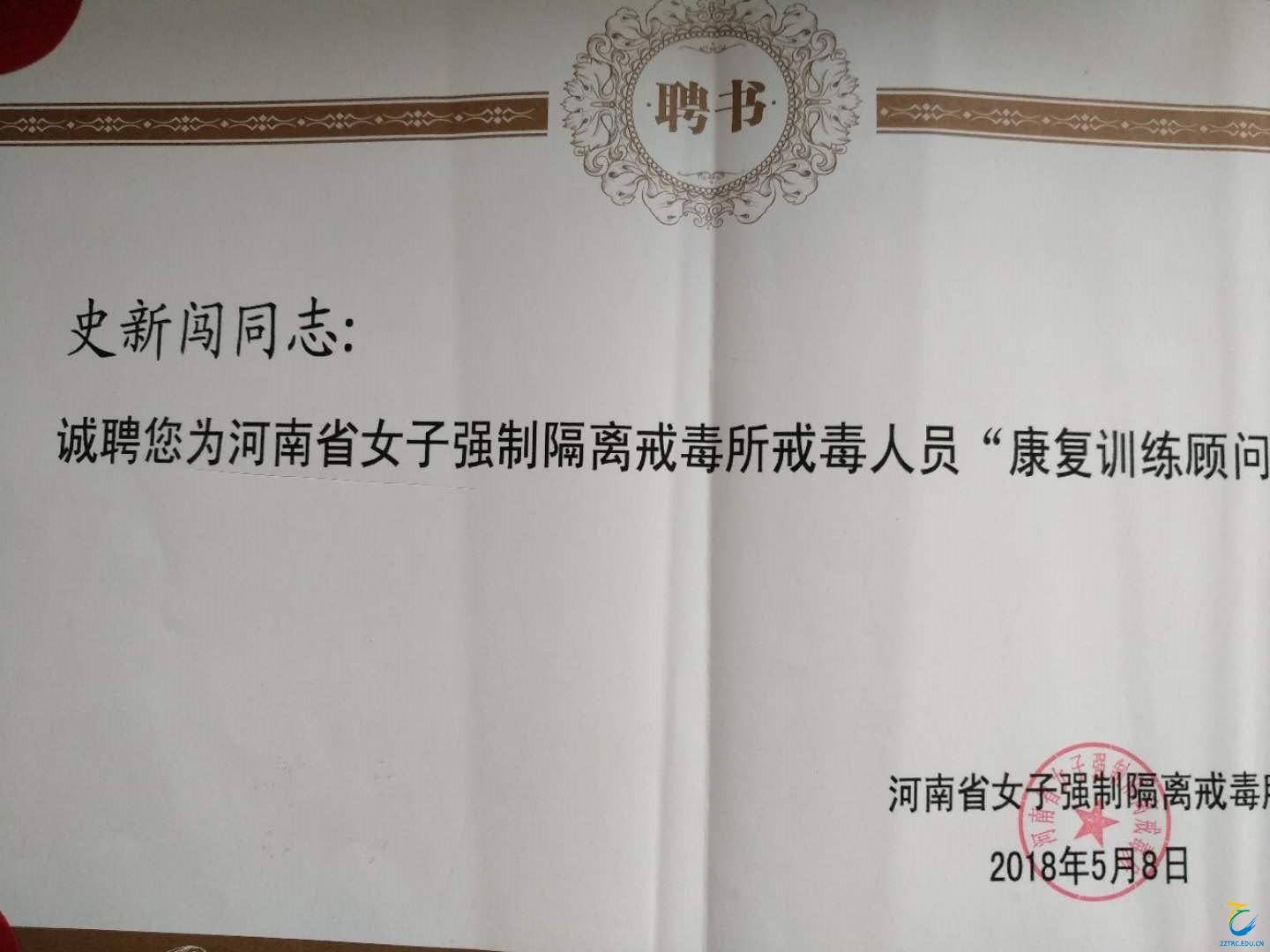 2018年5月8日上午,河南省司法局女子强制隔离戒毒所举办戒毒人员康复训练体系构建课题研究项目启动仪式。我部史新闯老师被聘为“河南省女子强制隔离戒毒所戒毒人员康复训练顾问”