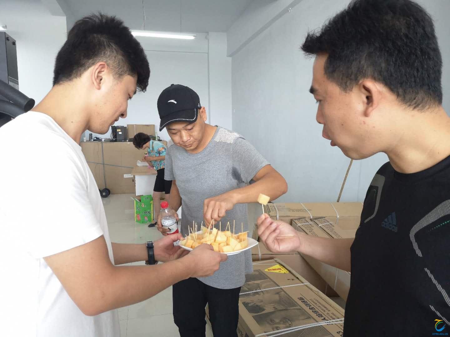 大家辛苦了!来,休息一下,喝点水、吃点水果。补充补充能量,撸起袖子继续加油干!