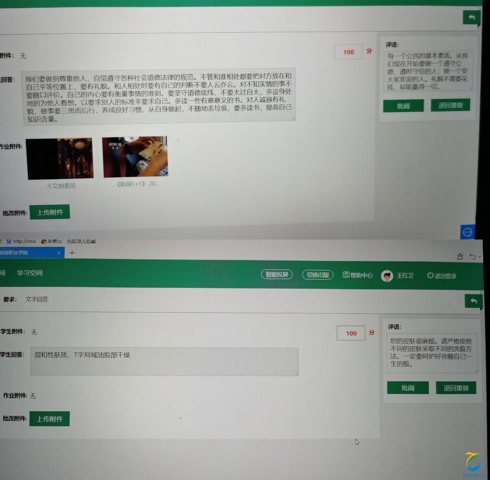 线上教学开课后,同学们也主动积极地配合网上课堂互动,积极参加网上讨论发言,按时完成预习任务和作业。课后,通过微信、QQ等方式积极与学生沟通,督促学生作业上交情况,作业质量情况。在认真授教的同时,认真批改学生的作业,把握每个学生的学习情况,关爱每一位学生。做到耐心答疑,对每个学生的留言提问都给予耐心解答,指导学生彻底掌握弄懂为止。每天这样重复的工作,目的就是将“停课不停教、停课不停学”落实到实处。