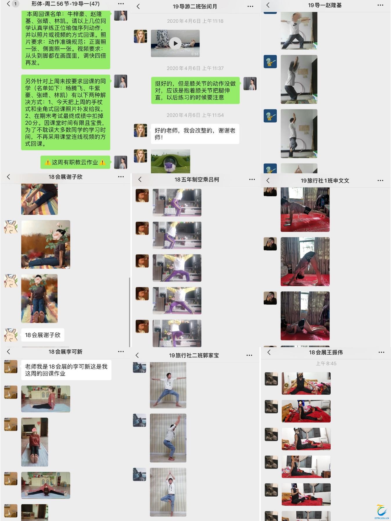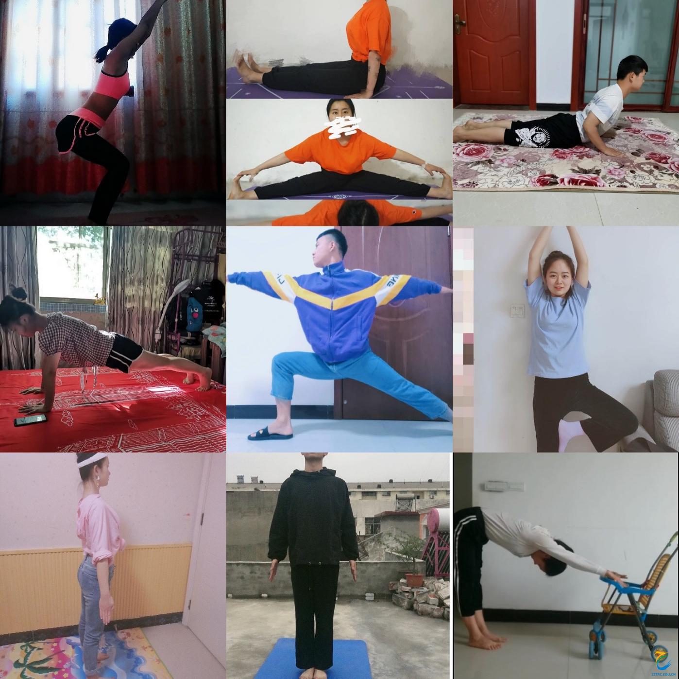 考虑到居家练习的场地因素和线上形体课教学的局限性,以及学生基本上没有任何舞蹈功底的现状。除了身体姿态训练外,我放弃了往常形体课堂中一贯的舞蹈教学内容,尝试给学生们上“瑜伽”课。瑜伽既能达到形体训练的目的,又能满足居家锻炼的场地与器材条件,更关键的是瑜伽比较“佛系”,它不像舞蹈那样严苛,瑜伽的每个动作都有不同难度系数的做法供学生们根据自身条件自由选择,如果学生的动作不标准,“云纠正”起来也比较方便。