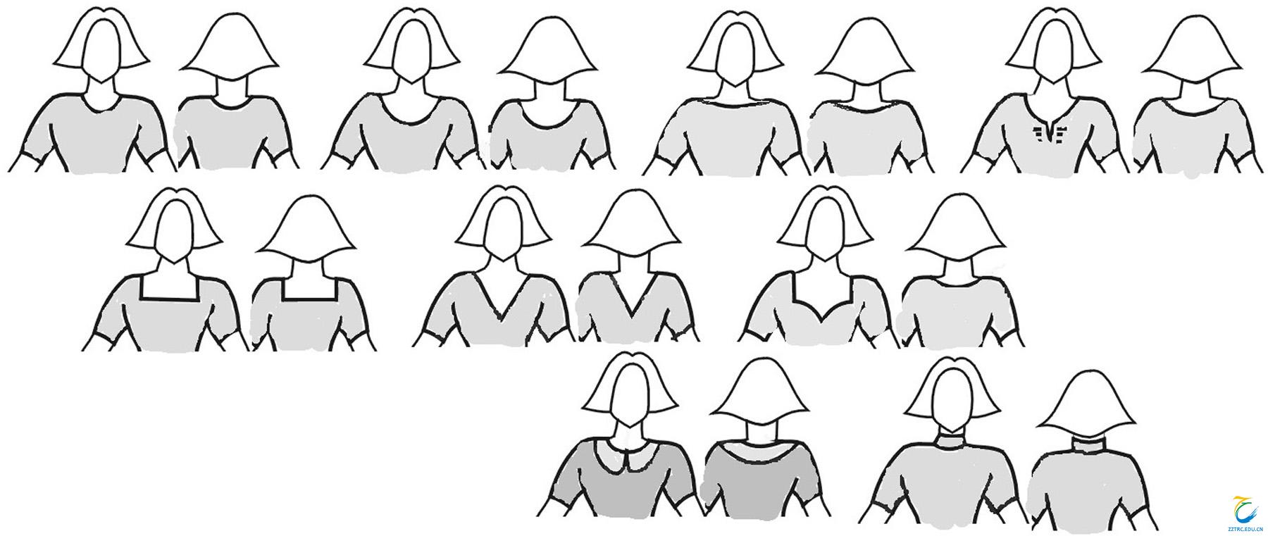 A.领口款式:仅允许以下裁剪,其它款式均不允许。