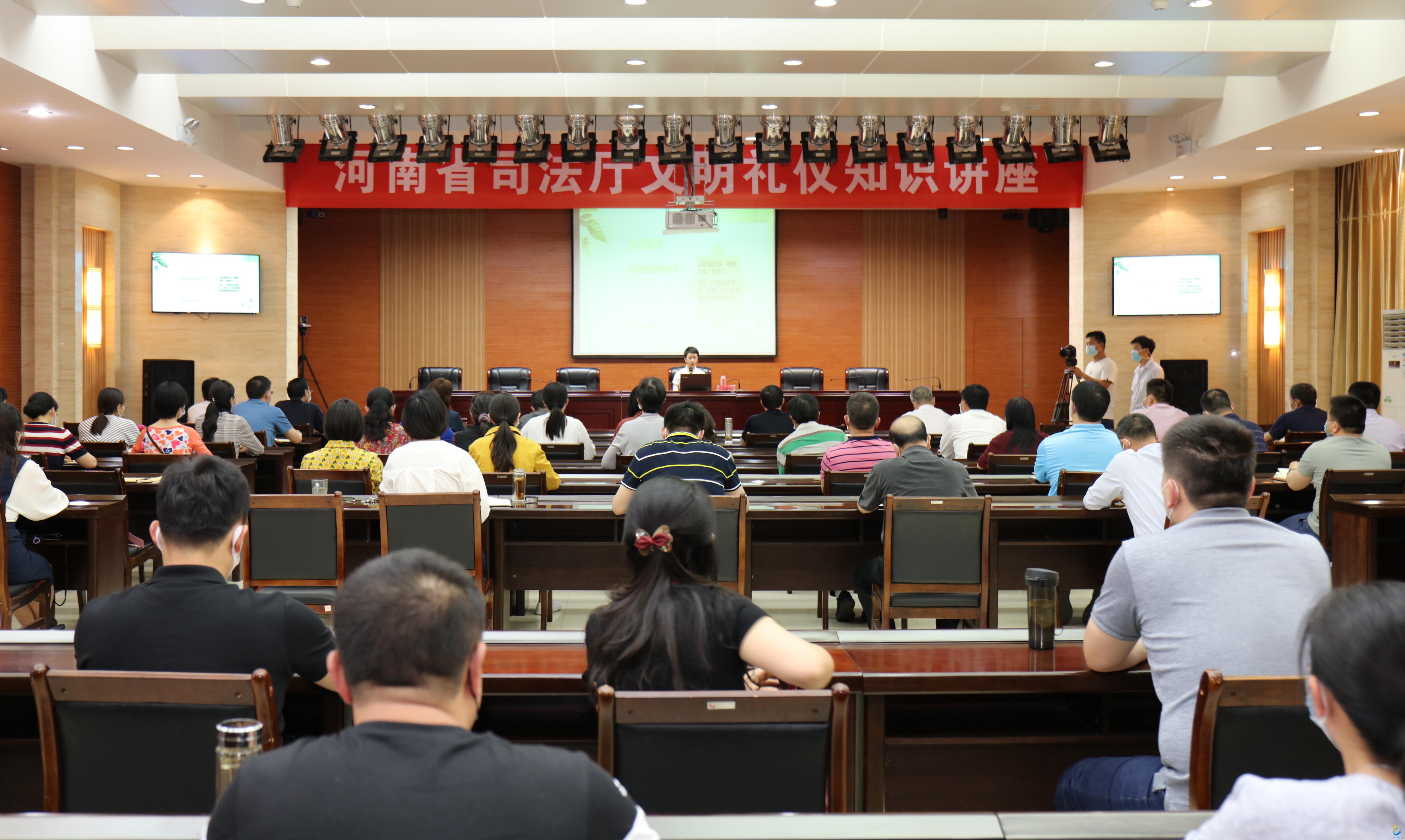 为进一步推广、普及文明礼仪,规范言行举止,提升广大干部职工的素养,营造文明有礼的良好氛围,5月15日下午,河南省司法厅组织开展文明礼仪知识讲座,邀请我院艺术体育部礼仪教研室主任王建华教授主讲,厅机关100余名干部职工参加。
