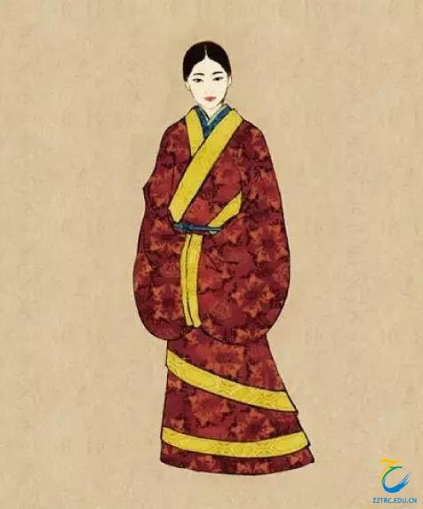 古时的汉服没有扣子,多采用绳带固定衣身。汉服的绳带兼顾了固定和装饰的作用,从而使汉服更加美观。
