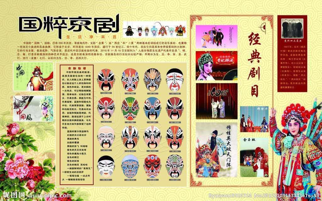 京剧,又称京戏,是中国影响最大的戏曲剧种,被称为“国粹”,流传全国,影响甚广,是见证中华文化、传统风尚、人文精神的艺术瑰宝。清乾隆55年(1790年)起,原在南方演出的三庆、四喜、春台、和春四大徽班陆续进京,与来自湖北的汉调艺人合作,同时接受了昆曲、秦腔的部分剧目、曲调和表演方法,又吸收了一些地方民间曲调,通过不断的交流、融合,最终形成京剧。