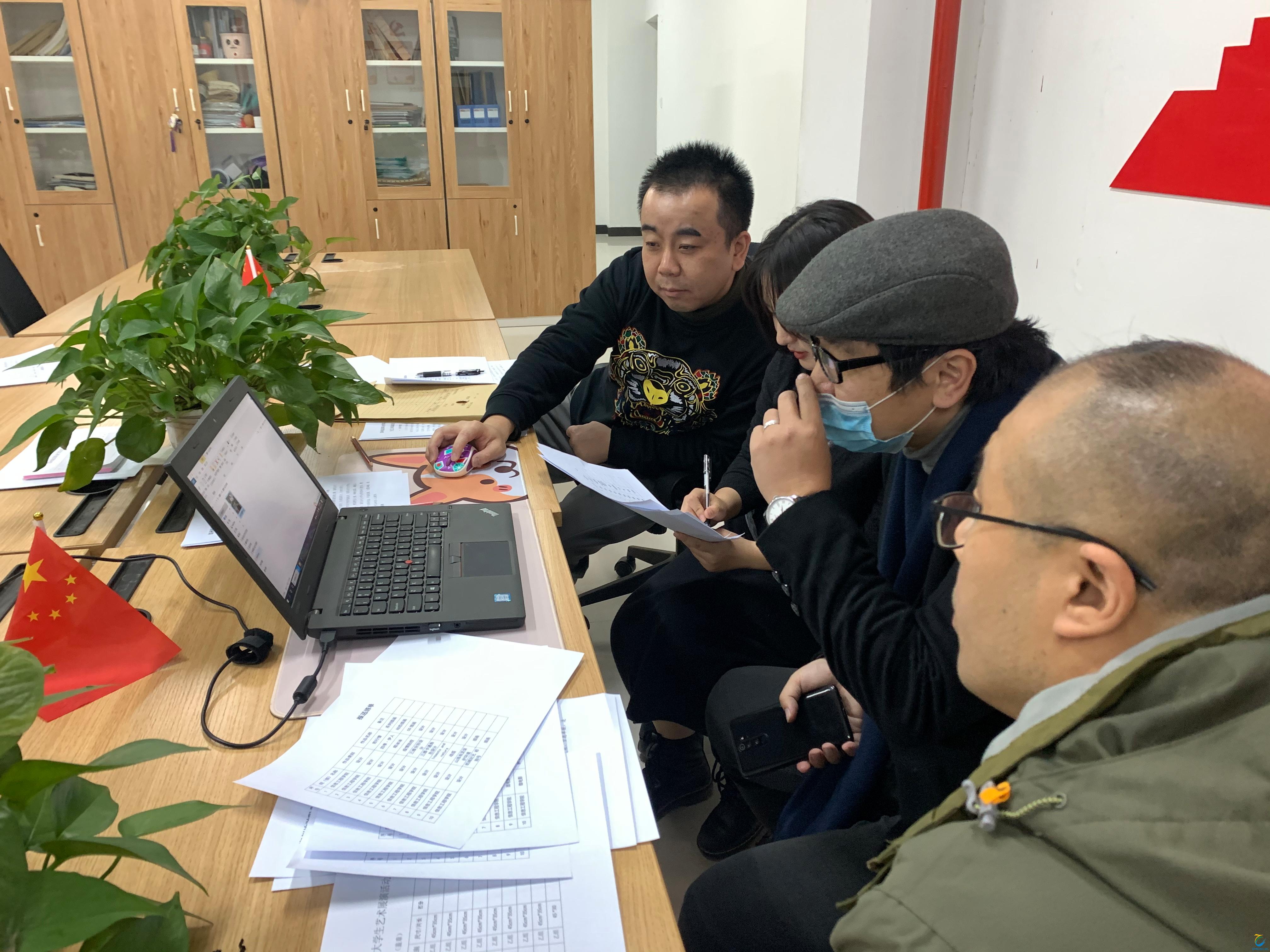 11月17日下午,pp电子游戏平台网站第六届大学生艺术展演活动艺术作品类评选活动在综合楼102办公室进行。民族传统技艺教研室主任朱江、环境艺术设计教研室主任刘翔、动漫教研室主任翟文彬、教师朱訚担任评委。
