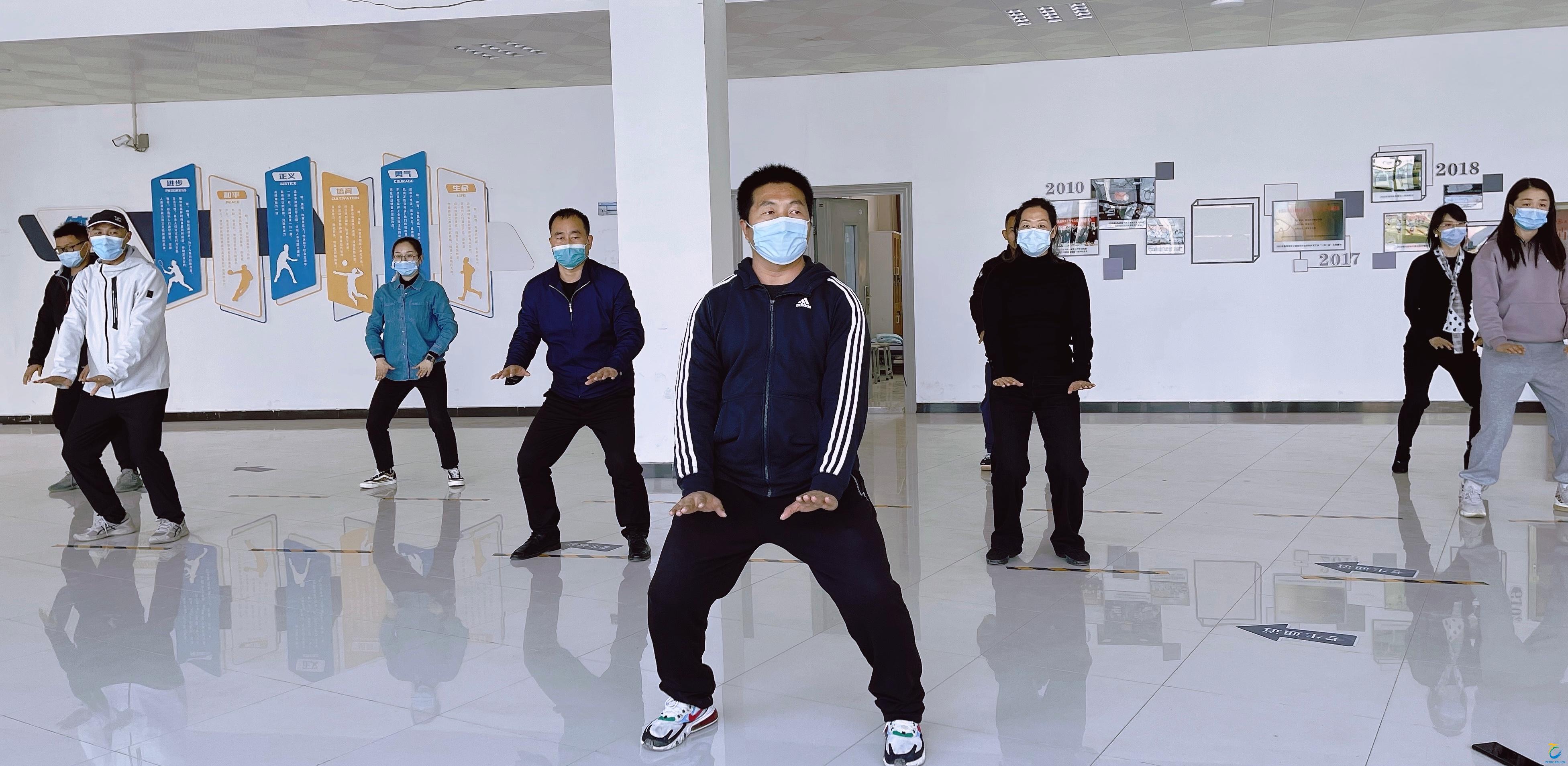 体育教学部党员史新闯老师带领全体党员学习八段锦,利用体育教学部的教学特色,组织八段锦学习训练活动,充分展现了体育教学部教工支部党员团结协作、众志成城的精神。