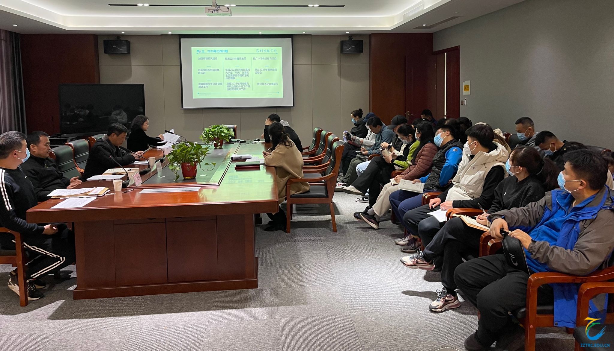 薛月主任代表部门从“提高教学质量,提升部门管理绩效;推进课程建设,探索教学模式,修订课程标准;加强师德师风建设,做到三个“1”,打造四个团队;迎接河南省高等职业学校体育工作评估;利用网络平台,启动校园阳光健康跑,参加第二届大学生线上健康校园大赛;贯彻教会、勤练、常赛;有序完成我院《国家学生体质健康》测试和数据上报工作;抓好新冠肺炎疫情防控工作;党建与思想政治工作;2023年工作展望”十个方面做述职报告。