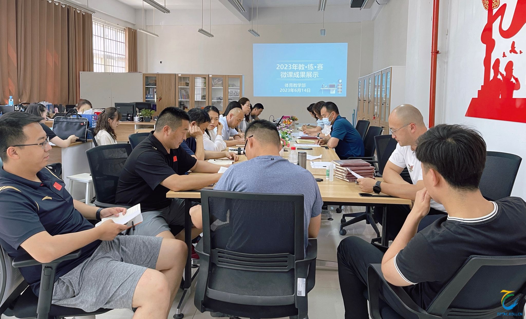 为深入学习贯彻党的二十大精神,用习近平新时代中国特色社会主义思想凝心铸魂,持续推进体育教学与思政教育相融合、运动技能提升与育人修身立德相促进、“健康第一”与“全面发展”相协调的发展格局。6月14日下午,体育教学部在综合楼A102举行教会、勤练、常赛微课比赛成果汇报会。部门全体教师参加会议,会议由体育教学部主任薛月主持。