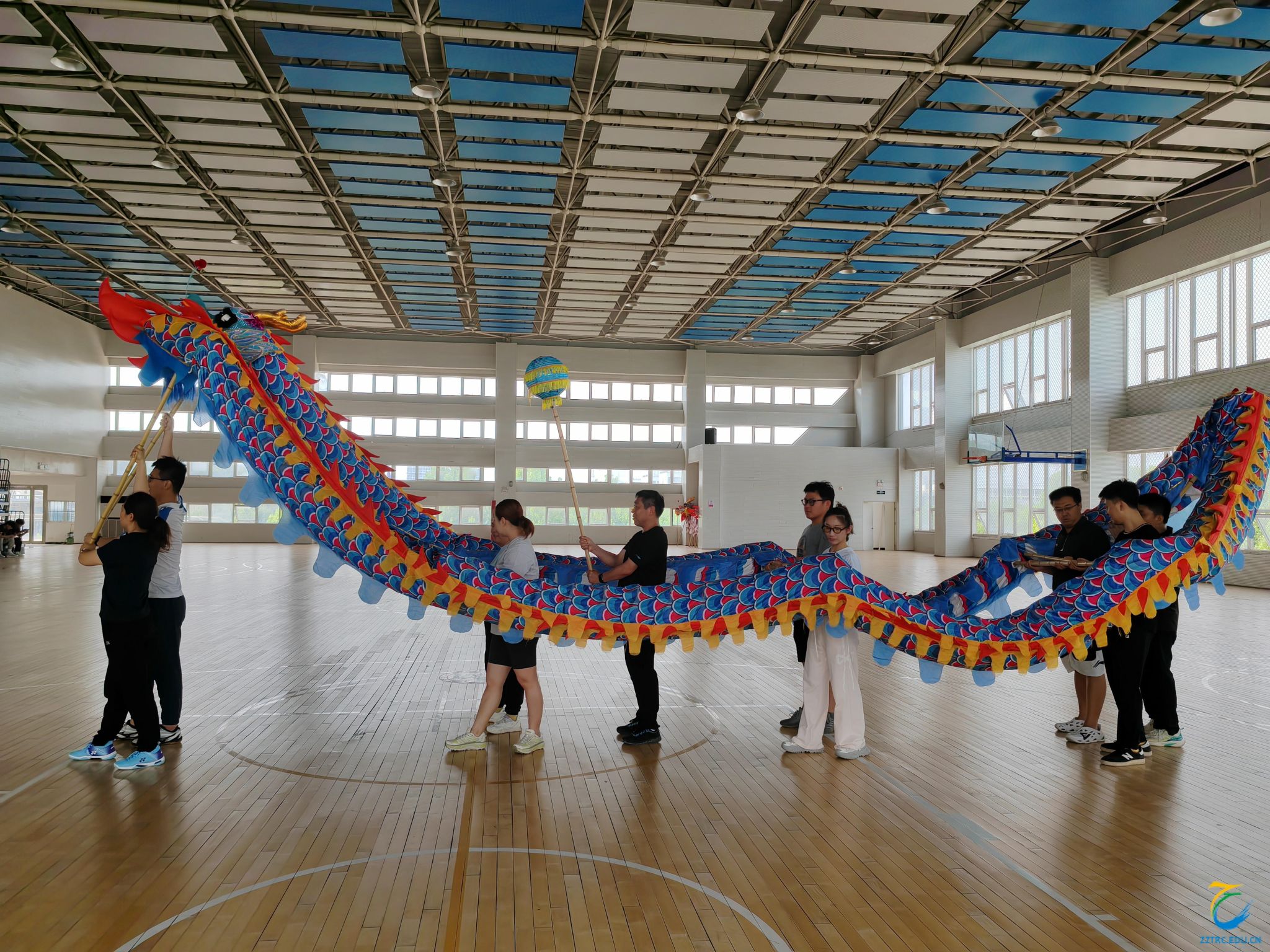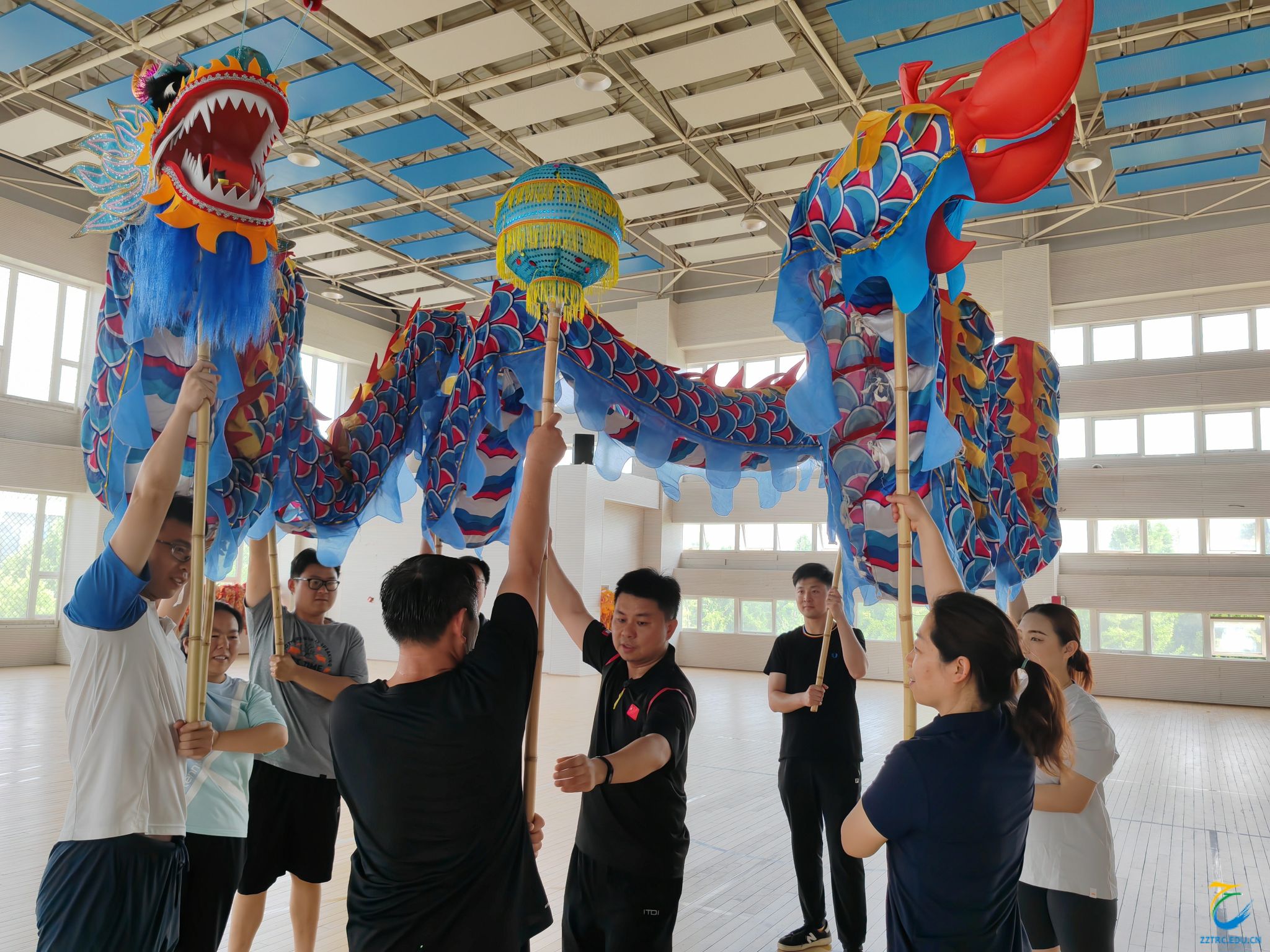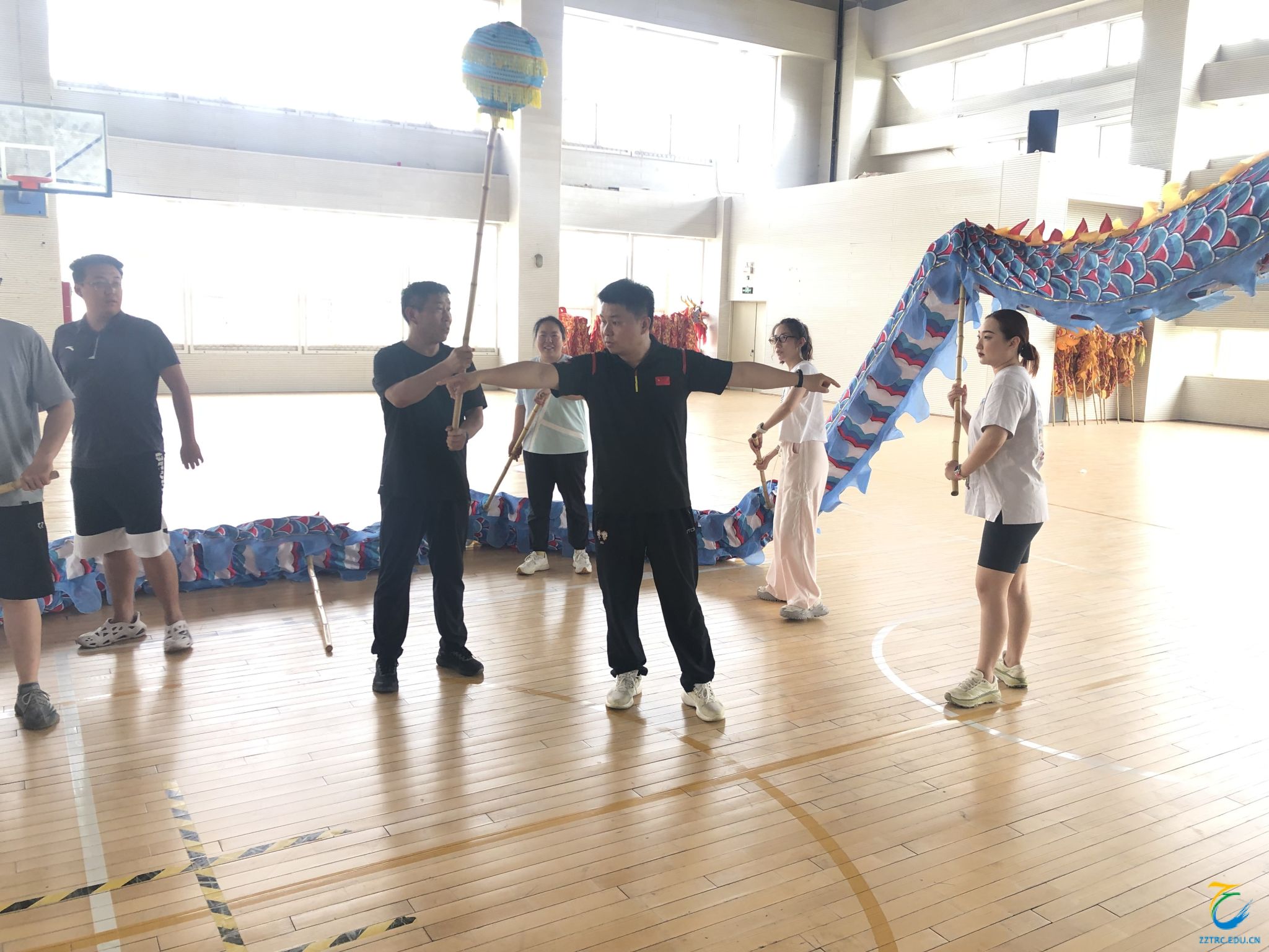 体育学院院长王军红带领学院全体教师学习舞龙技术:众人划桨开大船和祥龙出宫游四海。在舞龙舞狮国际级裁判王存良教授的指导下,老师们全身心投入舞龙技巧的学习中,切实感受到舞龙文化的源远流长与博大精深,深刻理解其作为中华文明象征的意义。