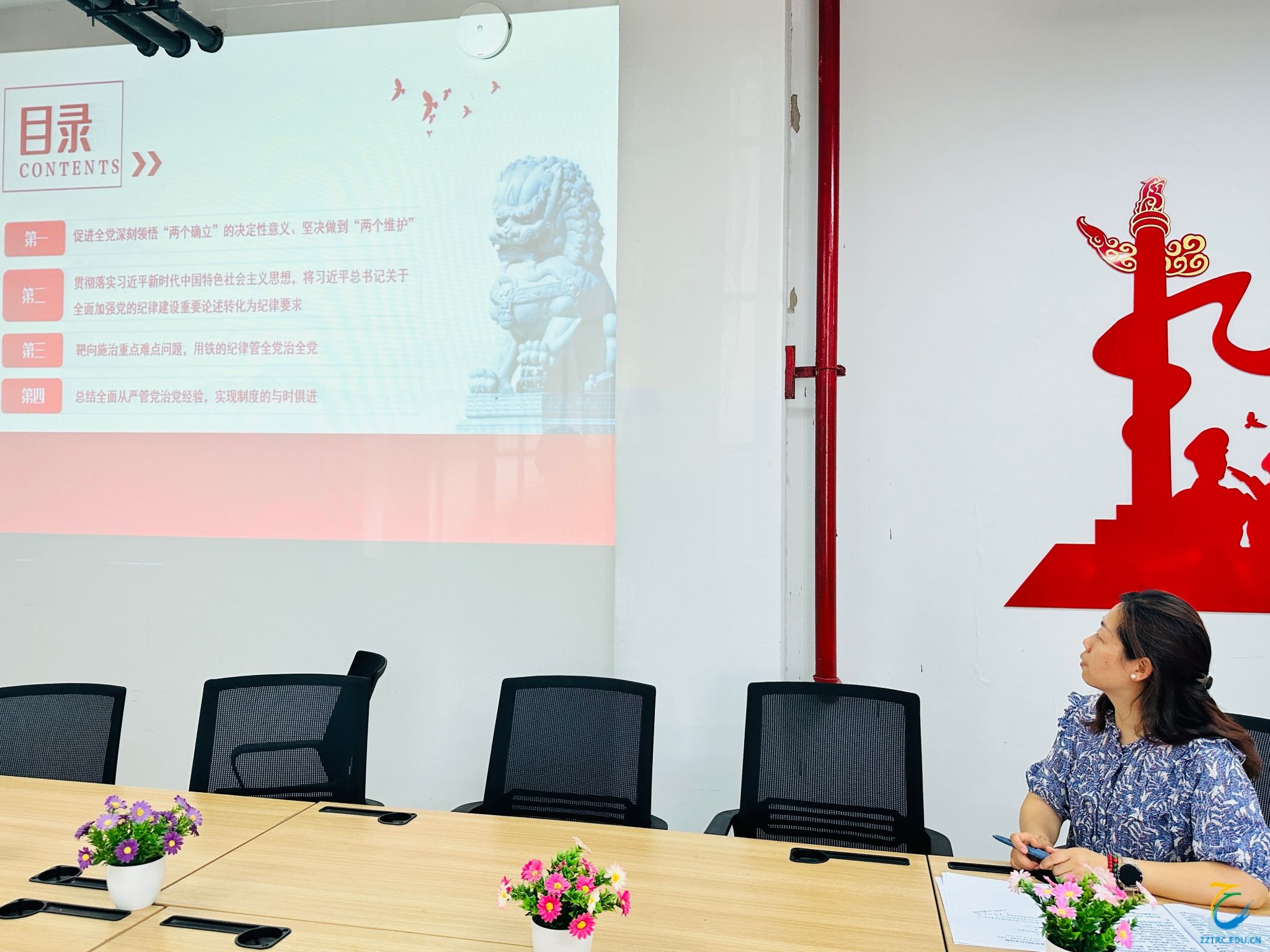 为深入推进党纪学习教育,6月12日,体育学院教工党支部在综合楼A102召开党员大会,支部书记梁娟作了题为《始终坚持严的基调 全面加强纪律建设》的专题党课。