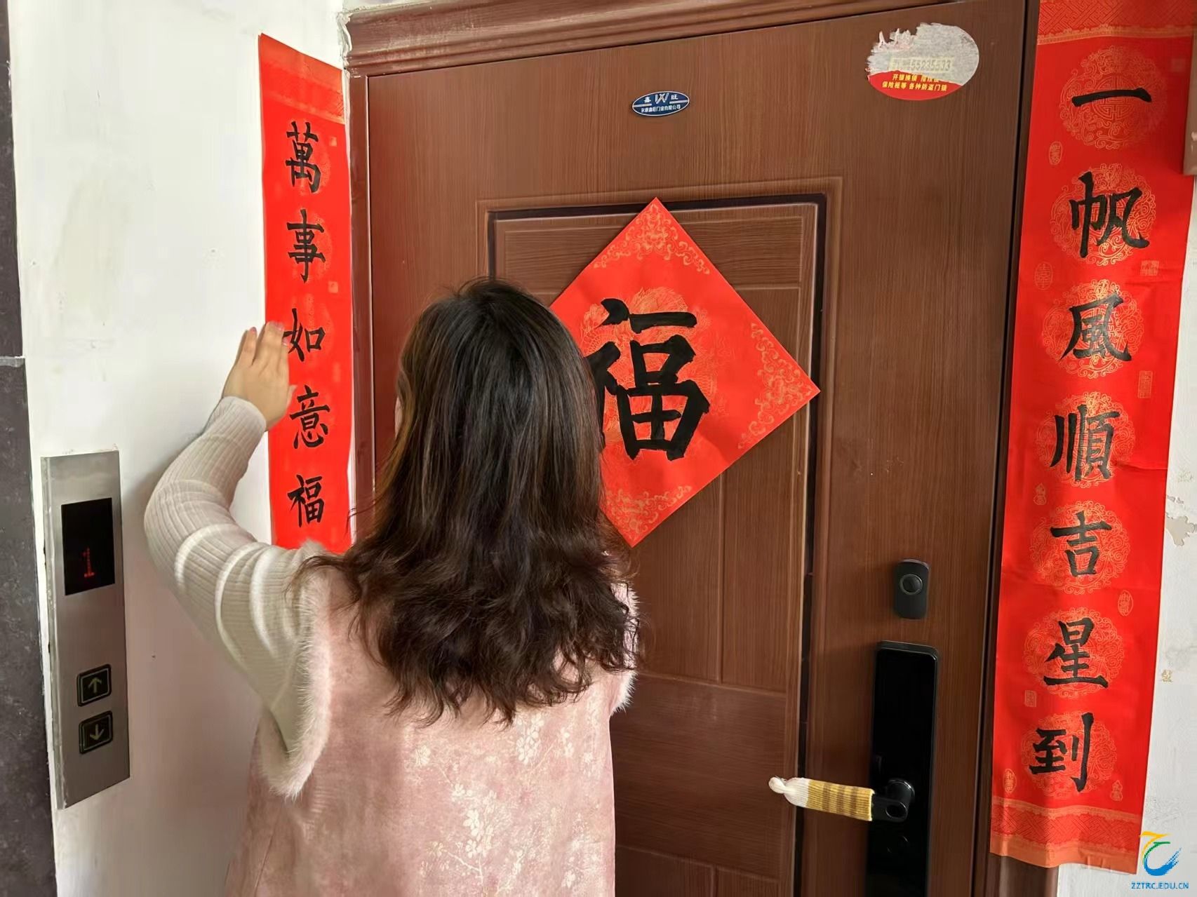 学院教师贴春联瞬间