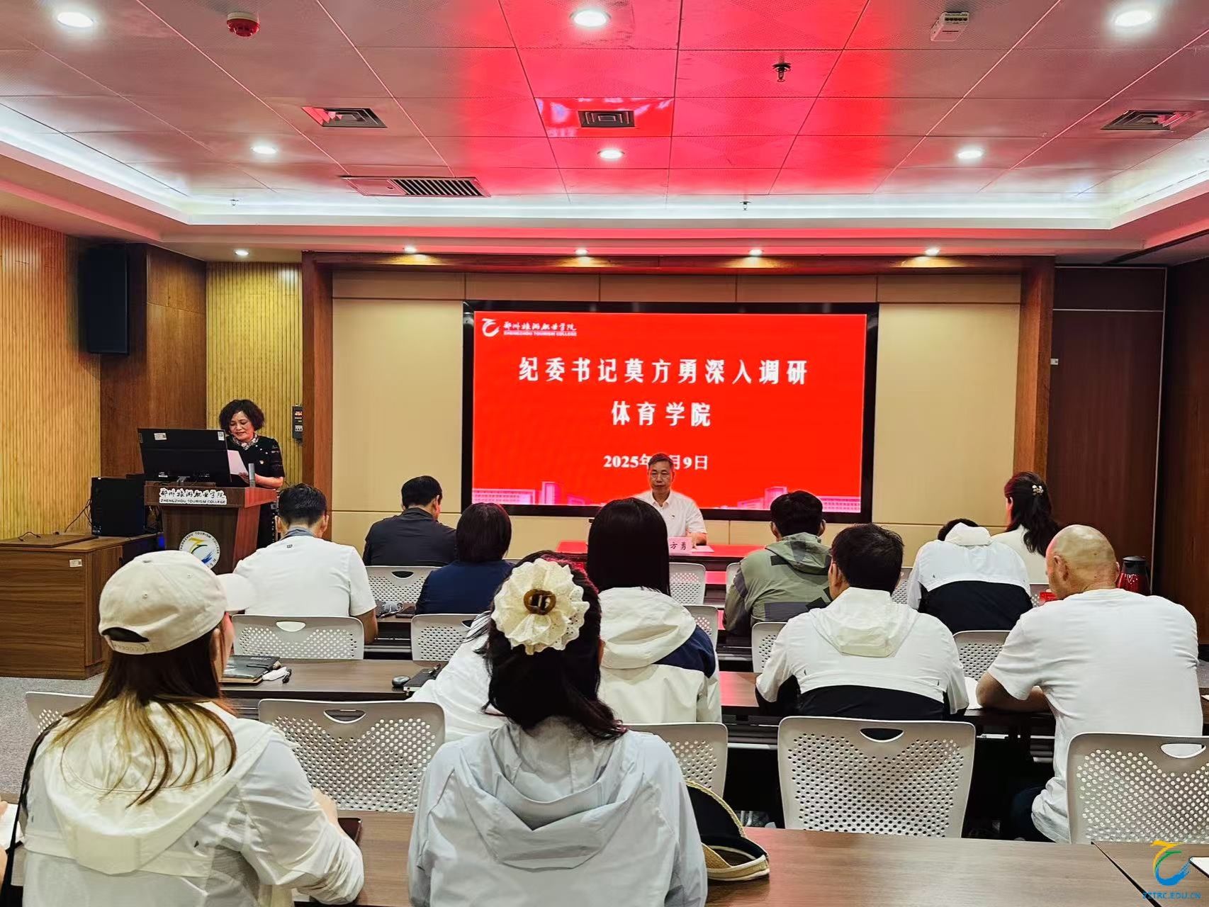 为全面加强基层党组织建设,扎实推进校领导联系基层工作,5月9日,校纪委书记莫方勇赴体育学院开展专题调研,重点围绕党建工作、体育教学与课程建设、师资队伍培养、体育竞赛活动开展及学院发展等问题进行座谈交流。党总支书记薛月、院长王军红及学院教师参加调研。会议由薛月主持。