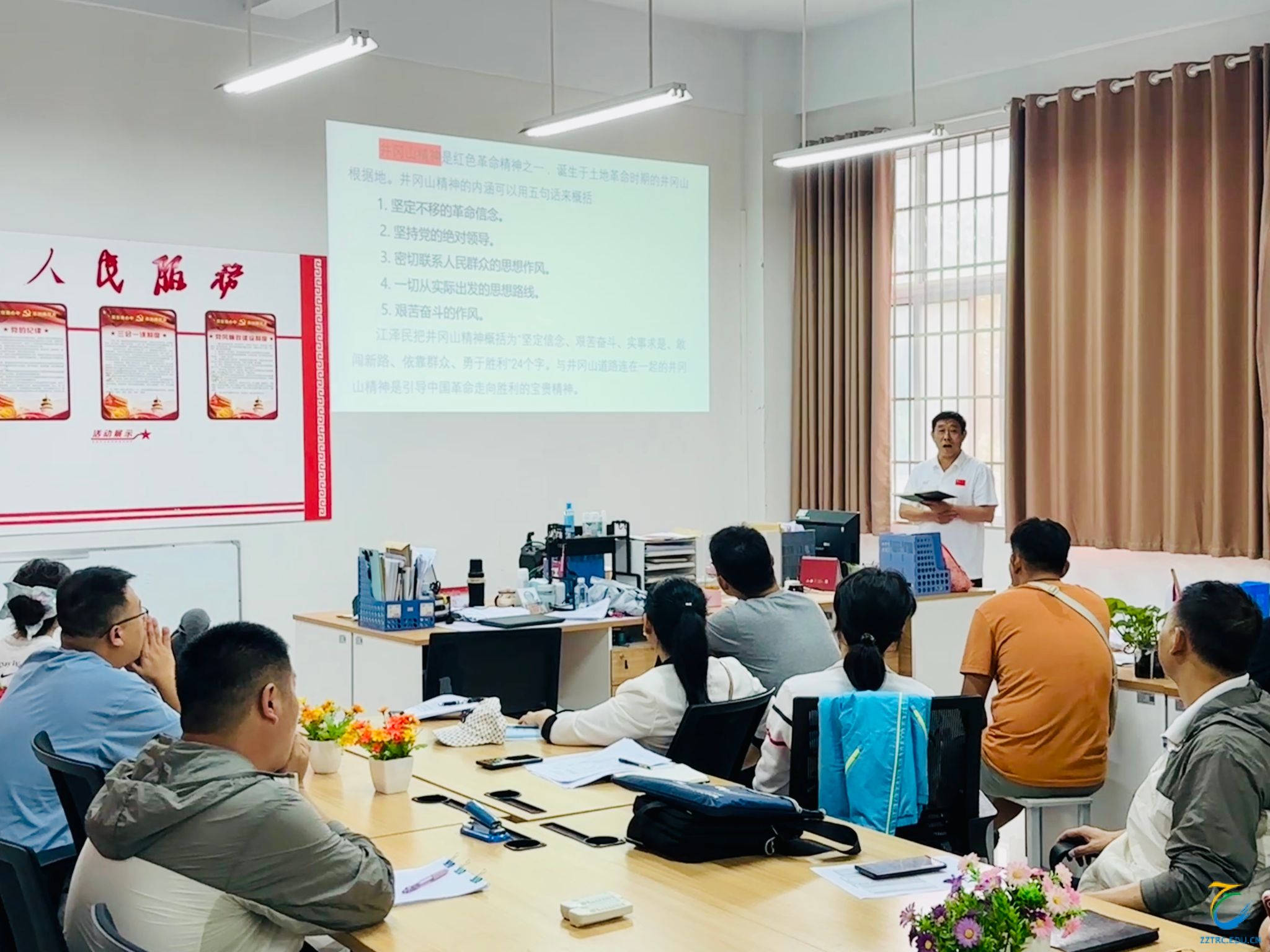 西柏坡精神(永不停步、将革命进行到底;“两个务必”、团结高效):他着重解读了“两个务必”(务必使同志们继续地保持谦虚、谨慎、不骄、不躁的作风,务必使同志们继续地保持艰苦奋斗的作风)对体育队伍的警示意义,要求大家戒骄戒躁,保持清醒,以“永不停步”的劲头推动学院体育事业高质量发展。