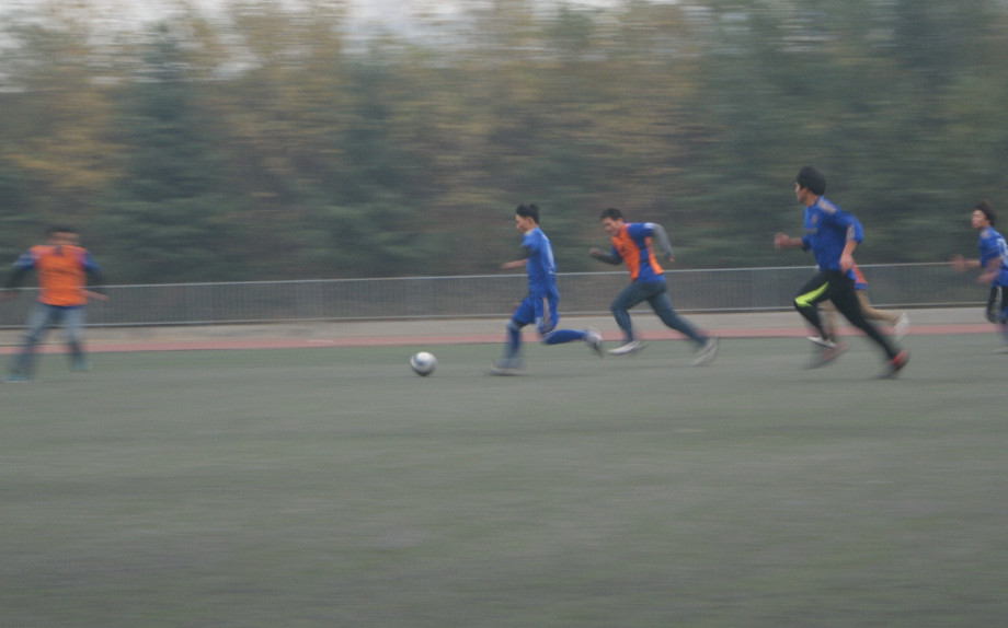 11月14日下午四时,2012年秋季迎新生足球比赛在学院足球场拉开帷幕。随着裁判的哨响,整个球场就充满了紧张的气氛,队员的激情全都淋漓尽致的体现在足球场上。每个队员都积极跑位,为队友作掩护,还时不时有精妙的传球、漂亮的配合和精彩地上足。比赛紧张激烈、扣人心弦,场内队员积极拼抢,场外的啦啦队同学也饶有兴致地观看着比赛,为参与比赛的同学打气、喝彩,与场内的气氛融为一体!