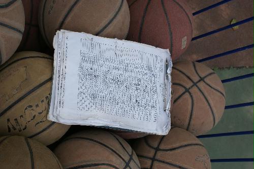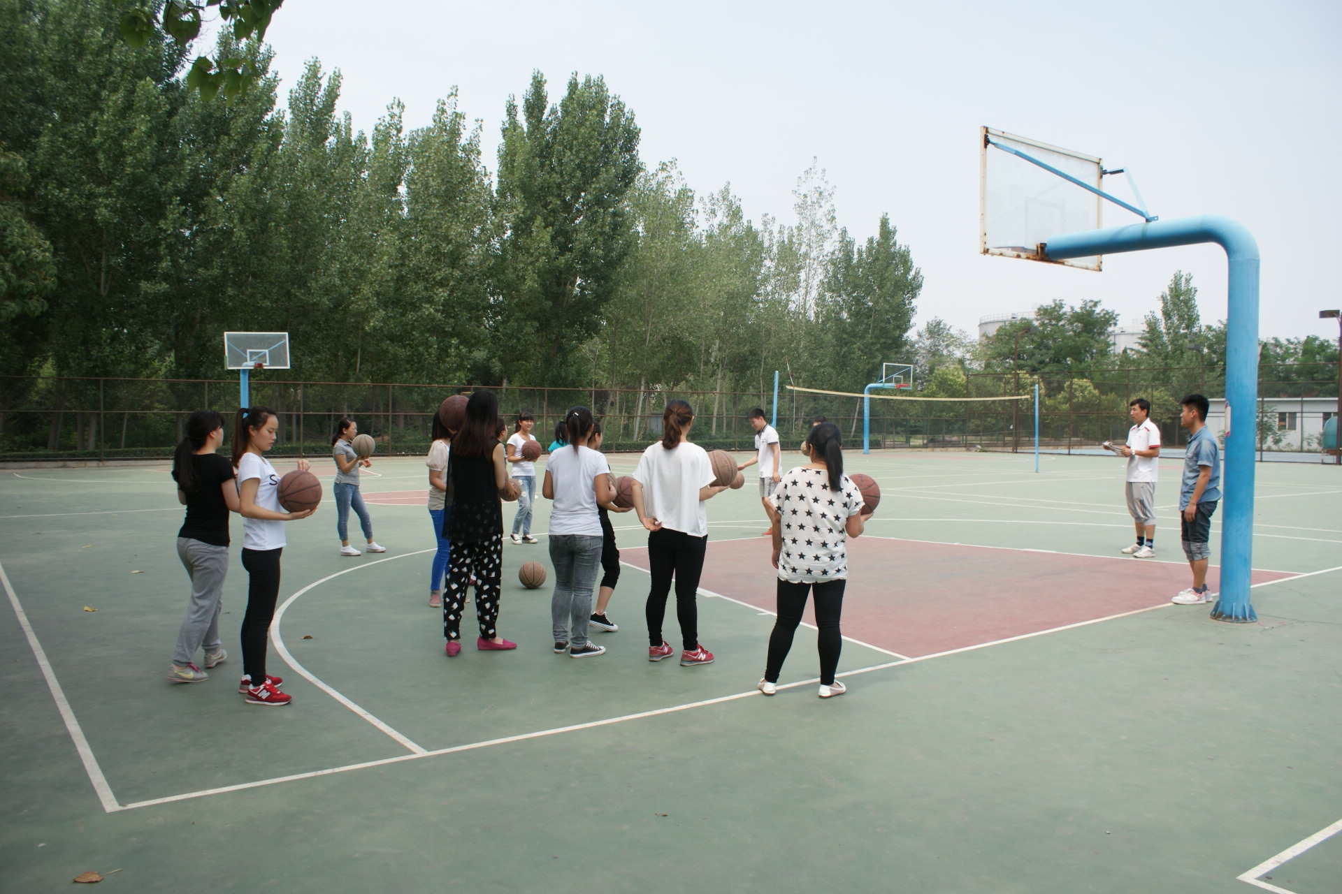 马超老师组织学生练习定点投篮