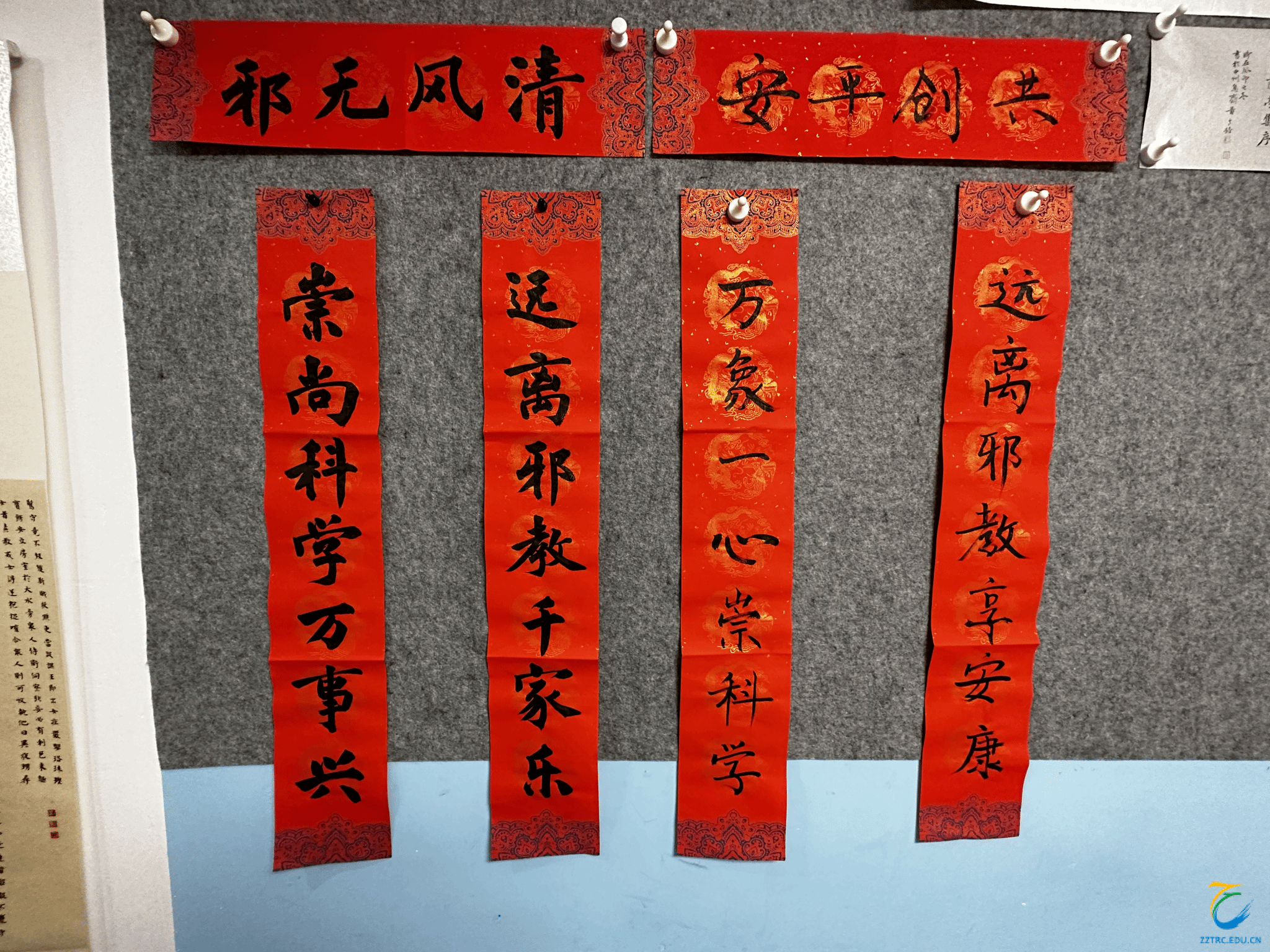 活动形式:将弘扬传统文化与反邪教相结合,全体教师书写反邪教春联或硬笔书法作品。参考内容如下: