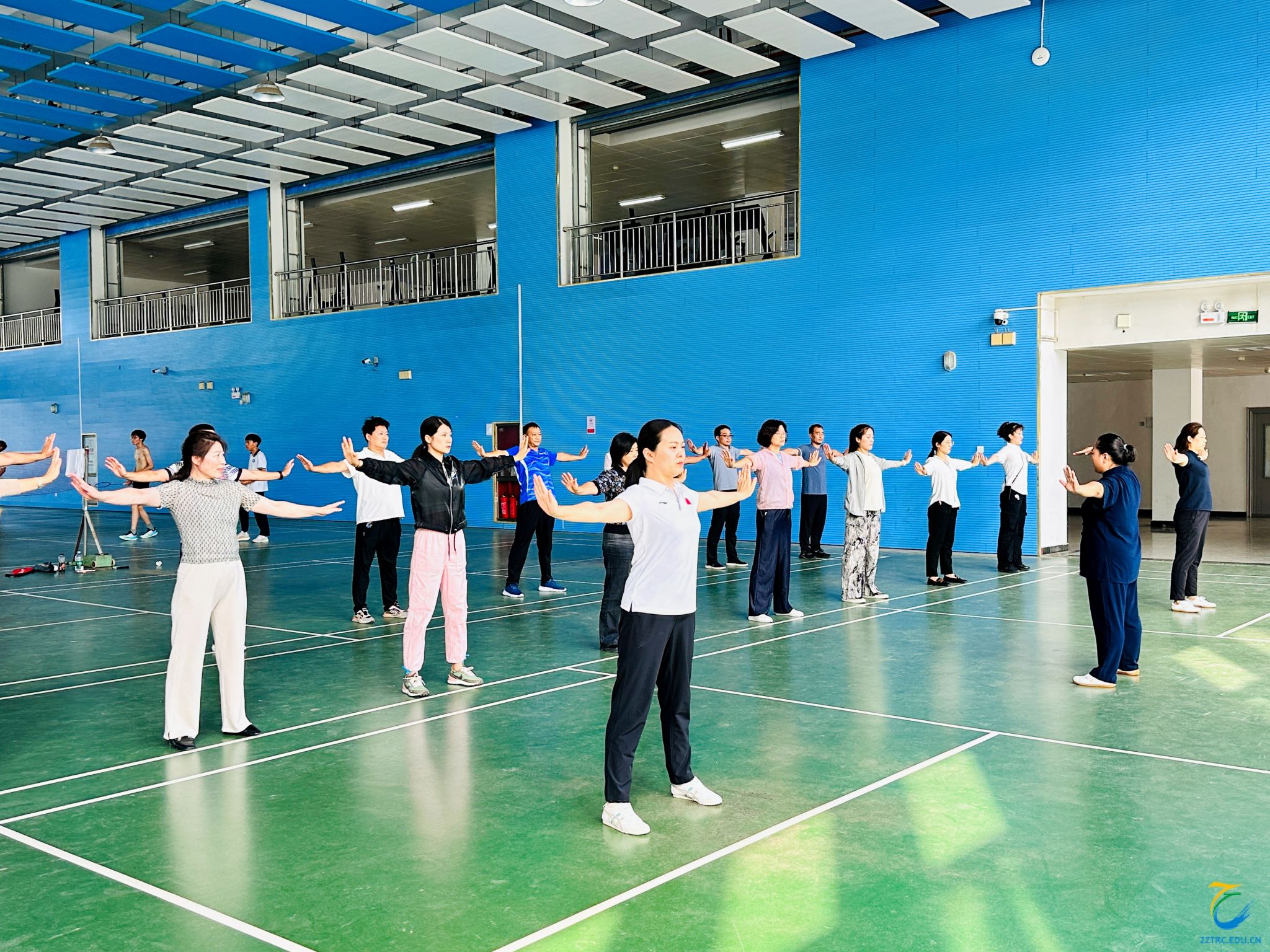 体育学院教师位慧娣为大家讲解了“易筋经”的由来、功效、动作要领以及练习注意事项。“易筋经”是一种通过运动肌肉、骨骼,疏通经络、气血,从而达到强身健体功效的传统健身功法。活动过程中全体党员教师认真学习,积极互动交流。围绕如何担负传承发展使命,弘扬优秀传统文化,深化教育教学改革,全面提高人才培养质量等展开讨论。