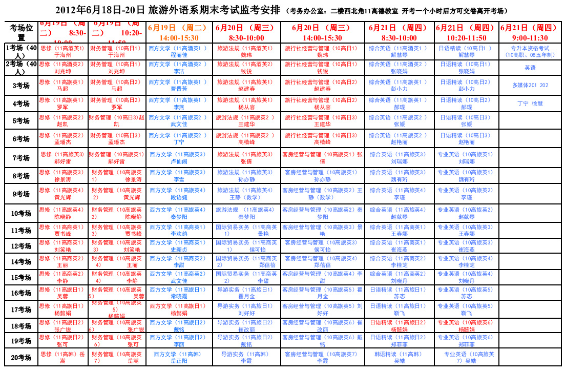 艺体部教师期末监考安排