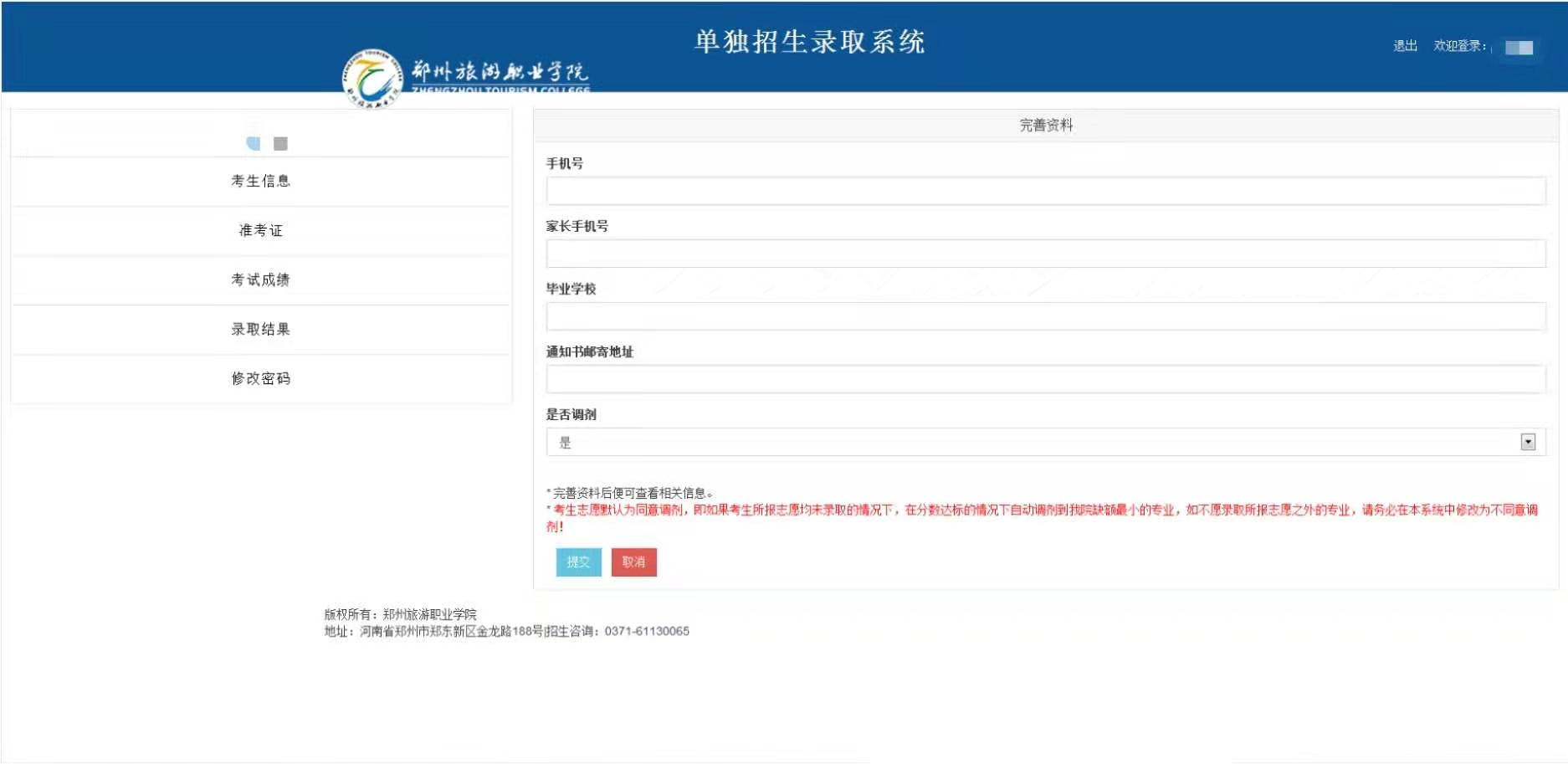 2.完善个人信息。登录系统后,考生按照要求完善个人信息。如下图: