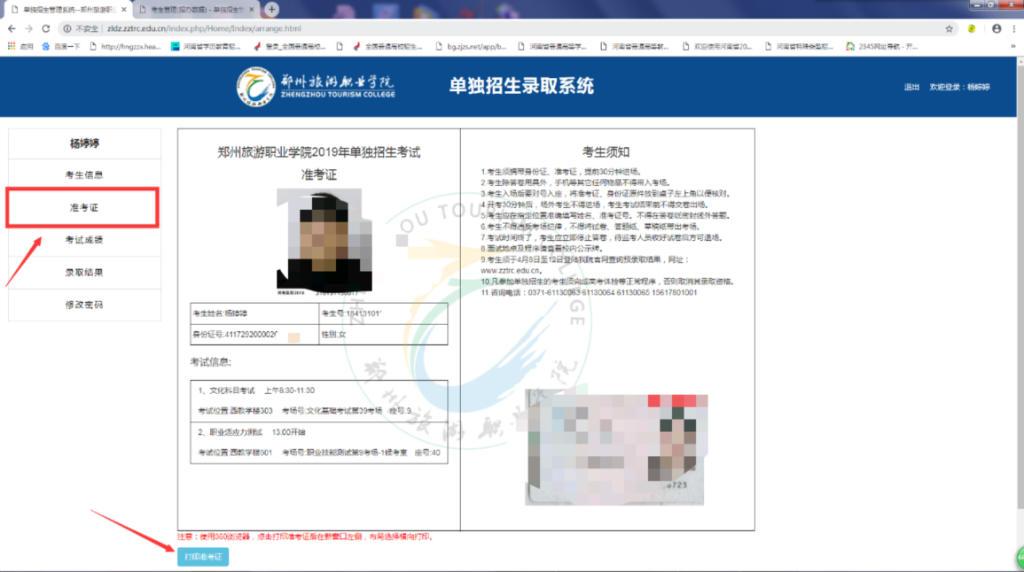 请考生务必先登陆pp电子“单独招生系统”完善相关信息;在规定时间内自行打印准考证,建议用彩色打印机A4纸打印准考证,无准考证者不得参加考试。