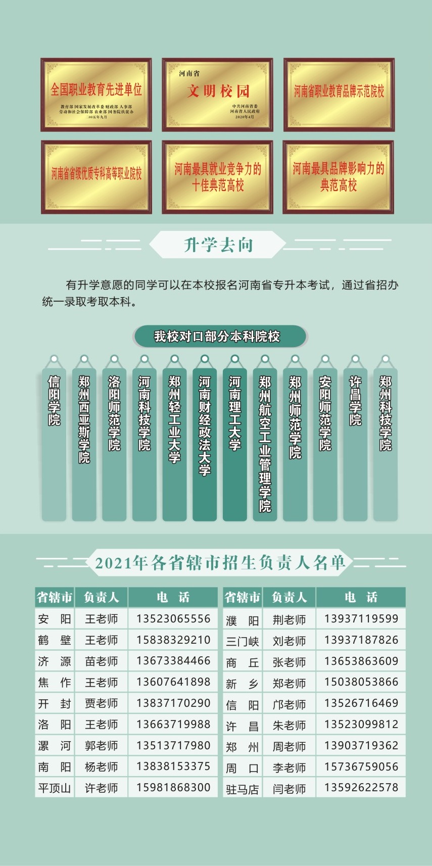 联系电话:0371-61130064 / 61130065(招生办)