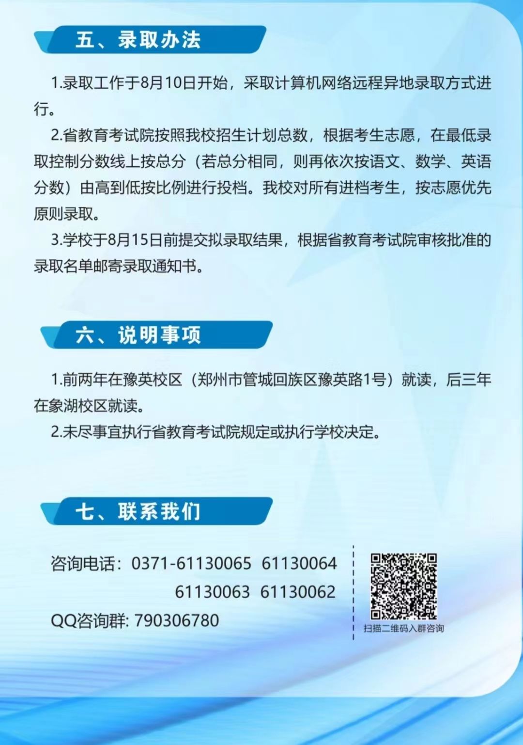 联系电话:0371-61130064 / 61130065(招生办)