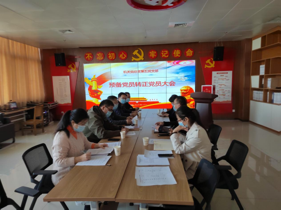 2021年11月18日下午,机关党总支第五党支部在行政楼11楼党员活动室召开了预备党员苗文明转正会议。此次会议应到党员9名,实到7名,请假2名。副院长张建军同志以普通党员身份参加了会议。组织委员王静蕾同志主持了会议。