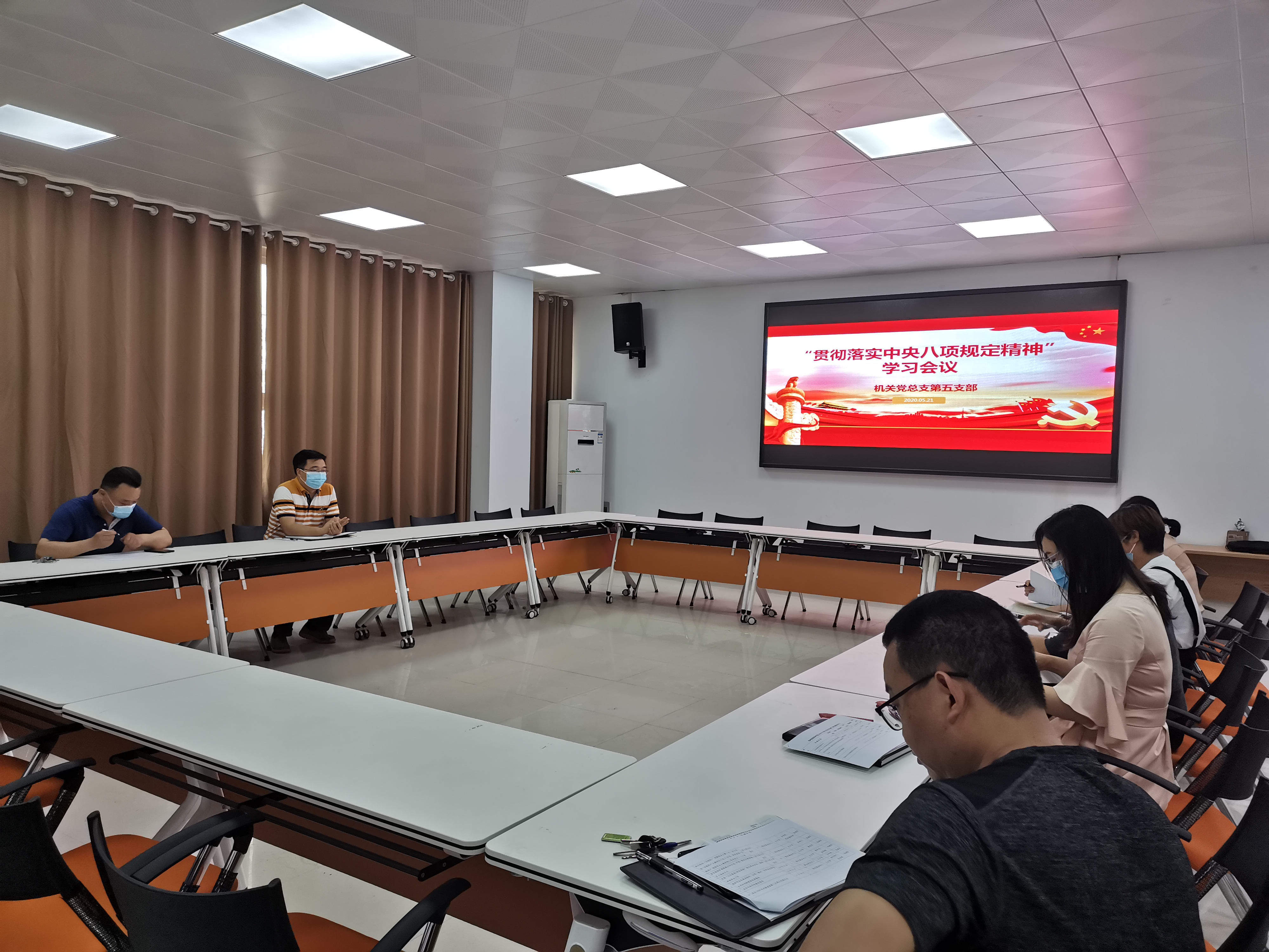 5月21日下午,第五支部人员召开“贯彻落实八项规定精神”学习会议,会议由王主任带领大家学习中央的“八项规定精神”。并落实大家关注公众号更好的学习及遵守“八项规定精神”。