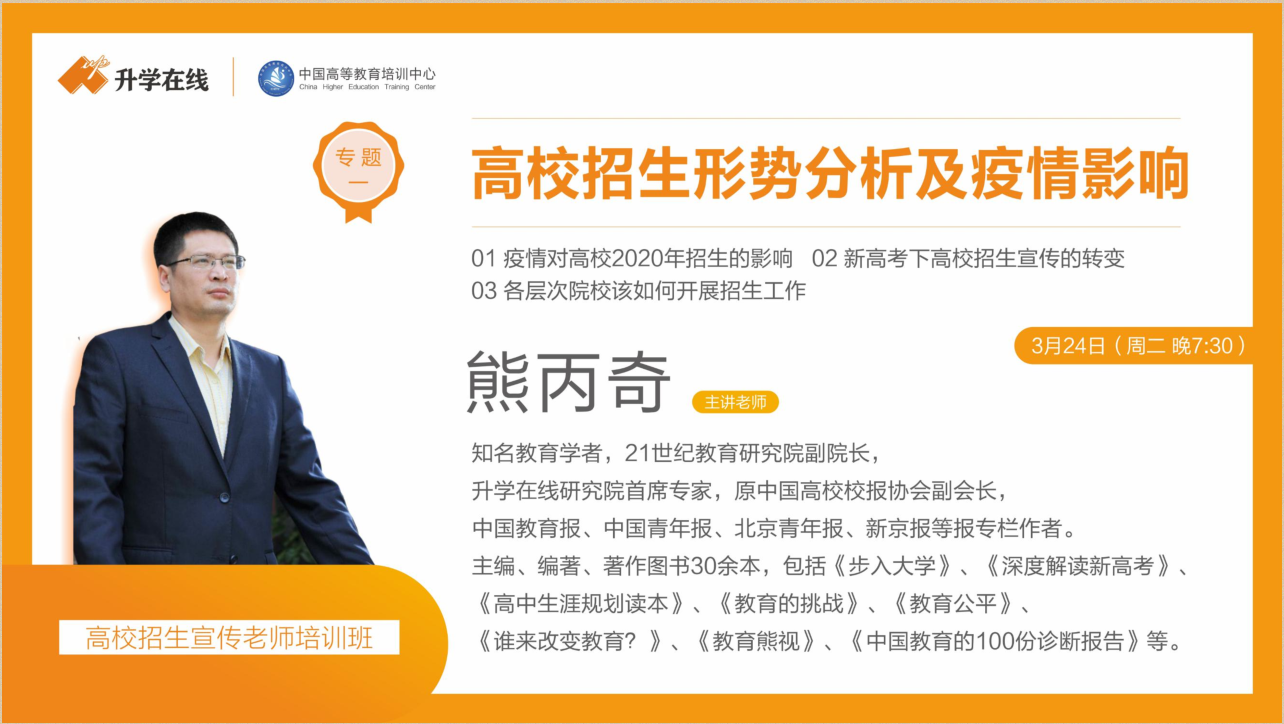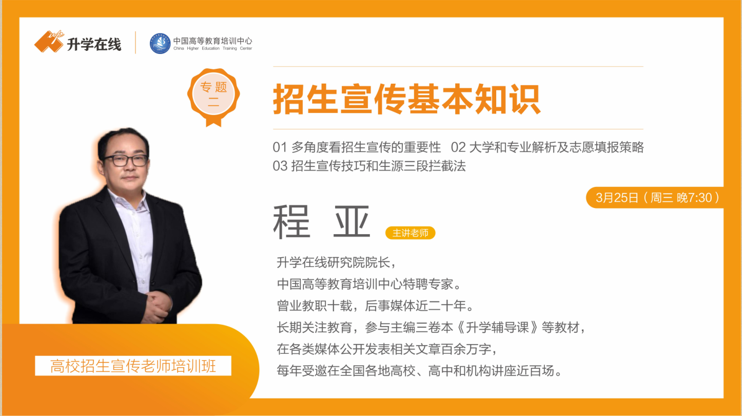 在这个特殊时期,pp电子10位招生办老师和招生干事克服种种困难完成了升学在线、中国高等教育培训中心组织的线上高校招生培训课程。此次课程历时4天,全国共有28个省市自治区1621所高校,34516位高校老师报名参加培训。课程中专家教授针对高校招生工作的本质、当前招生宣传存在的问题、招生工作内容的定位和目标边界、招生工作创新的思路进行了详细讲解,着重分析了疫情对高校2020年招生的影响、新高考下高校招生宣传的转变、各层次高校该如何开展招生工作等内容。