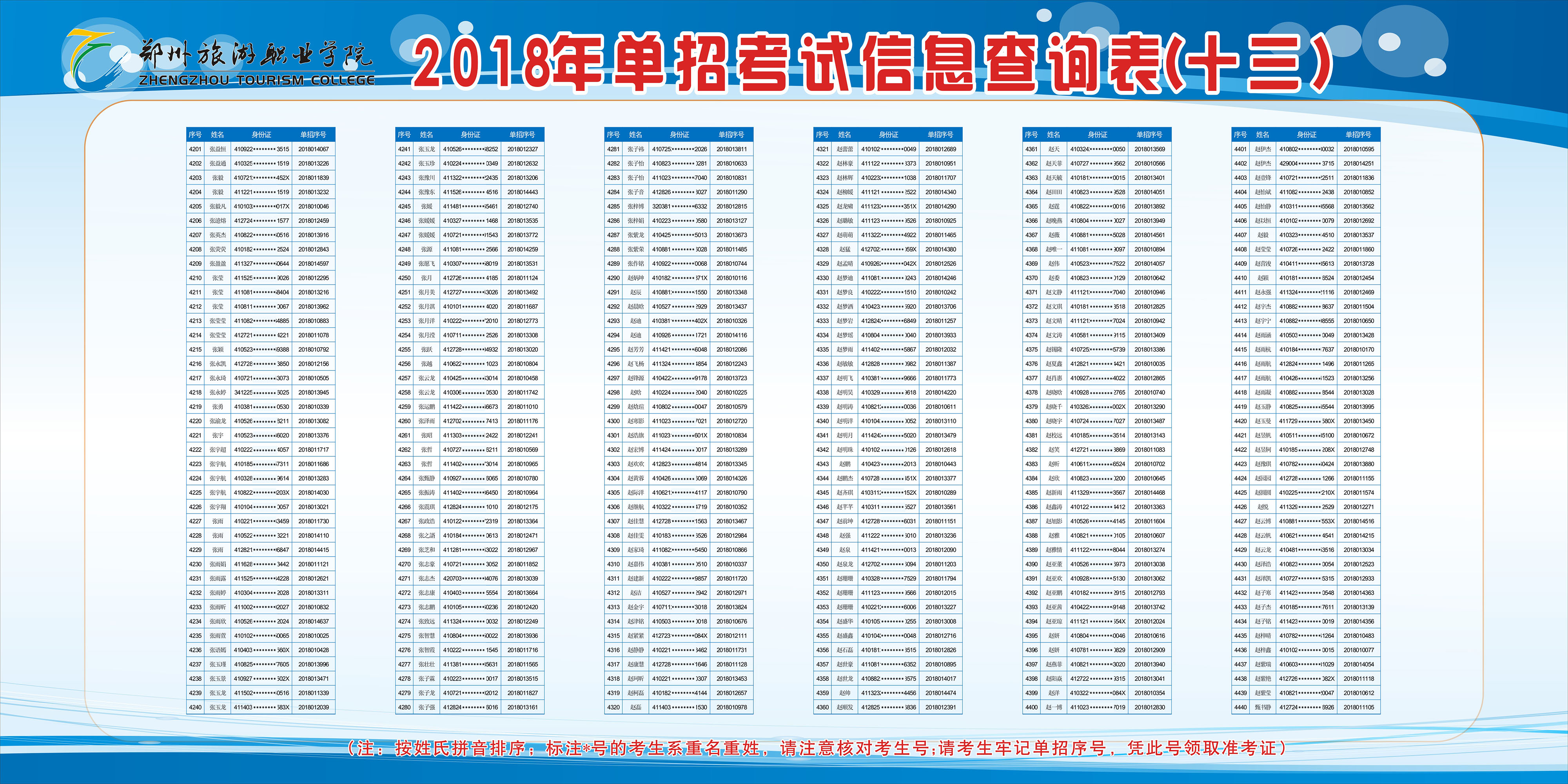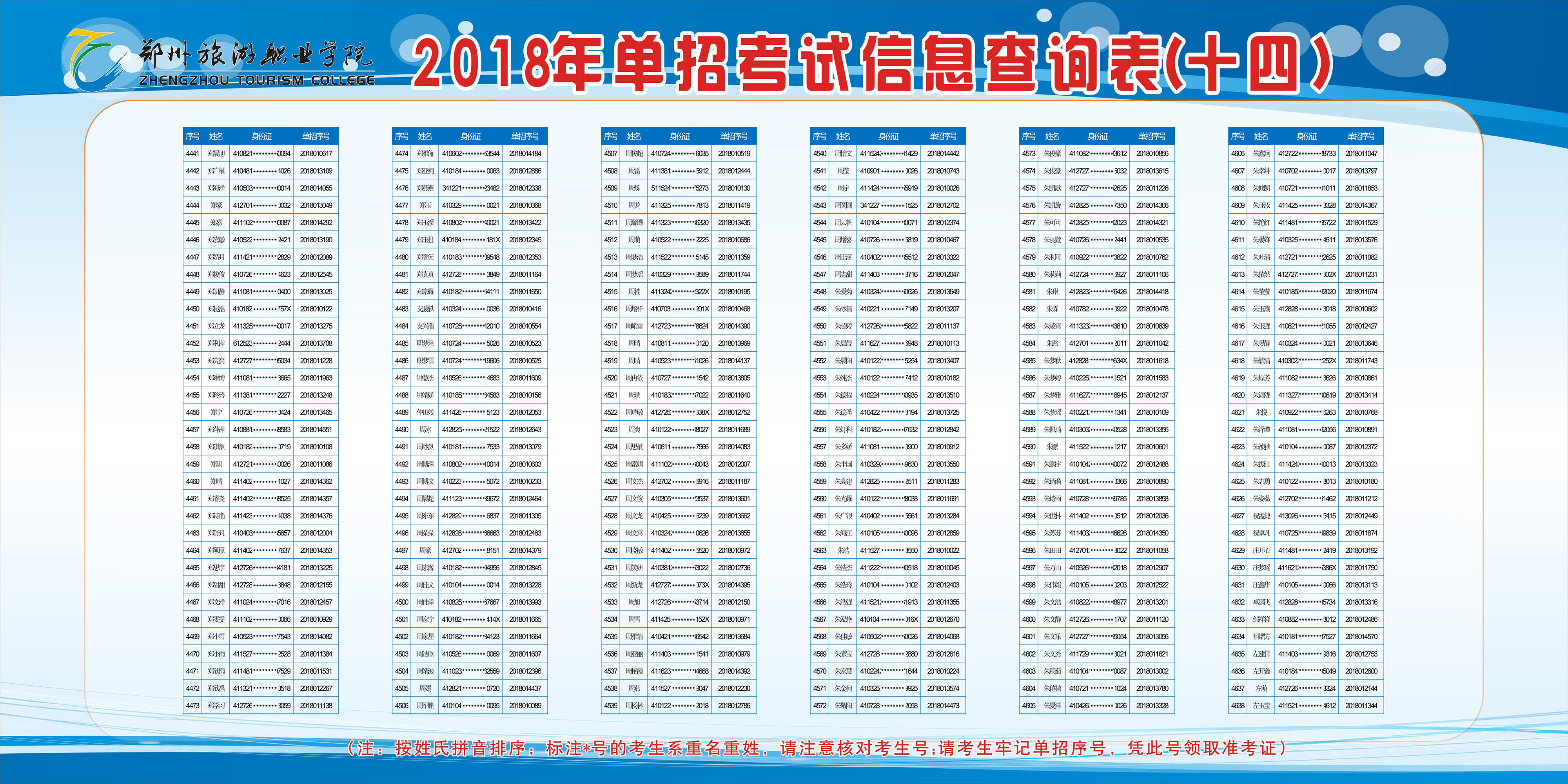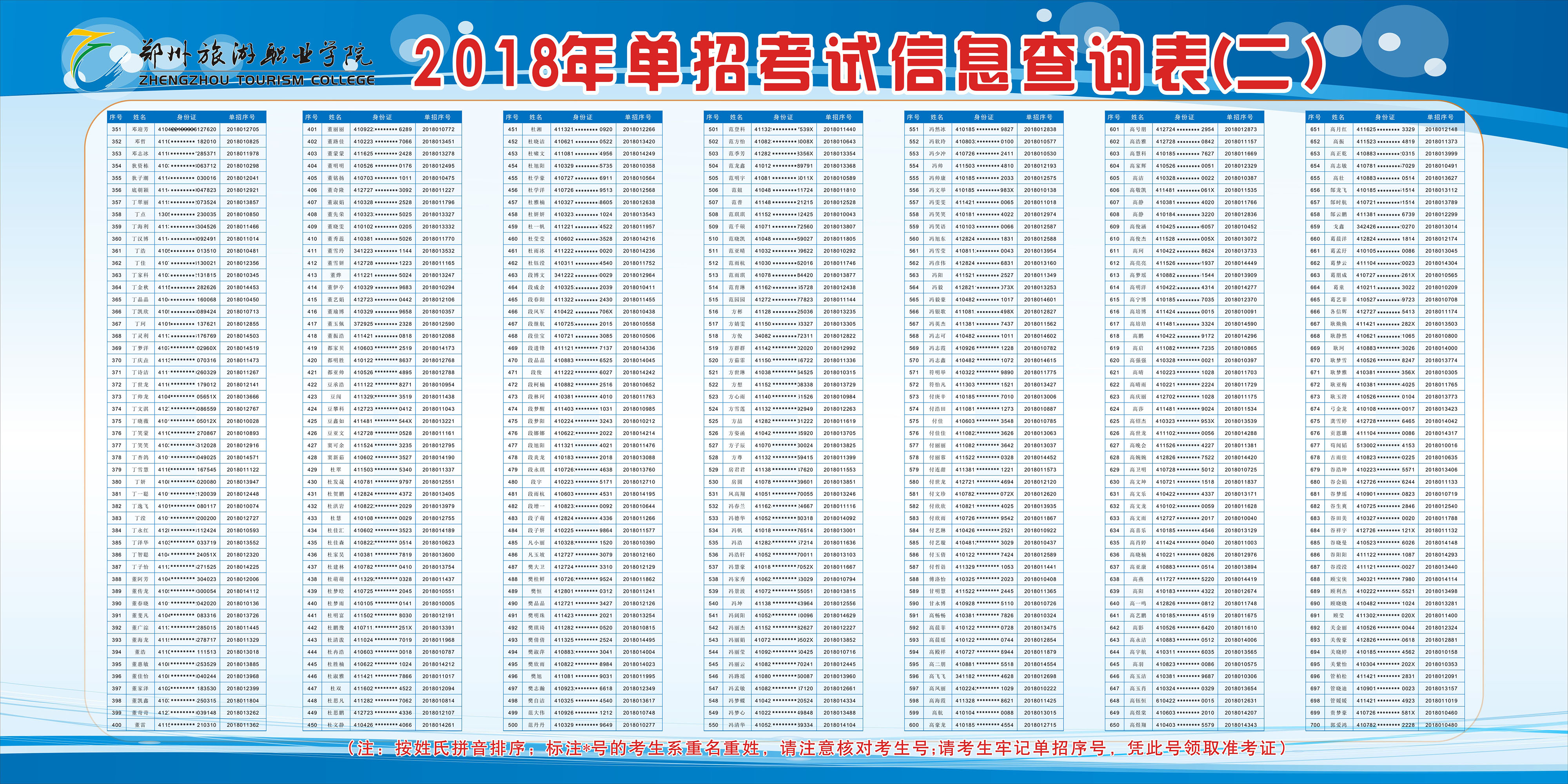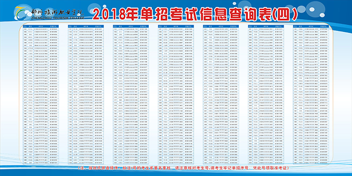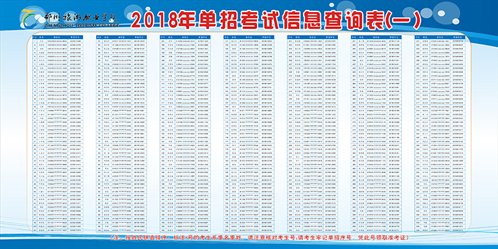 温馨提示:请点击查看大图,此查询表是依照考生姓氏排序,请考生们注意查询自己的单招序号并牢记,3月31日请持身份证并报单招序号领取准考证。