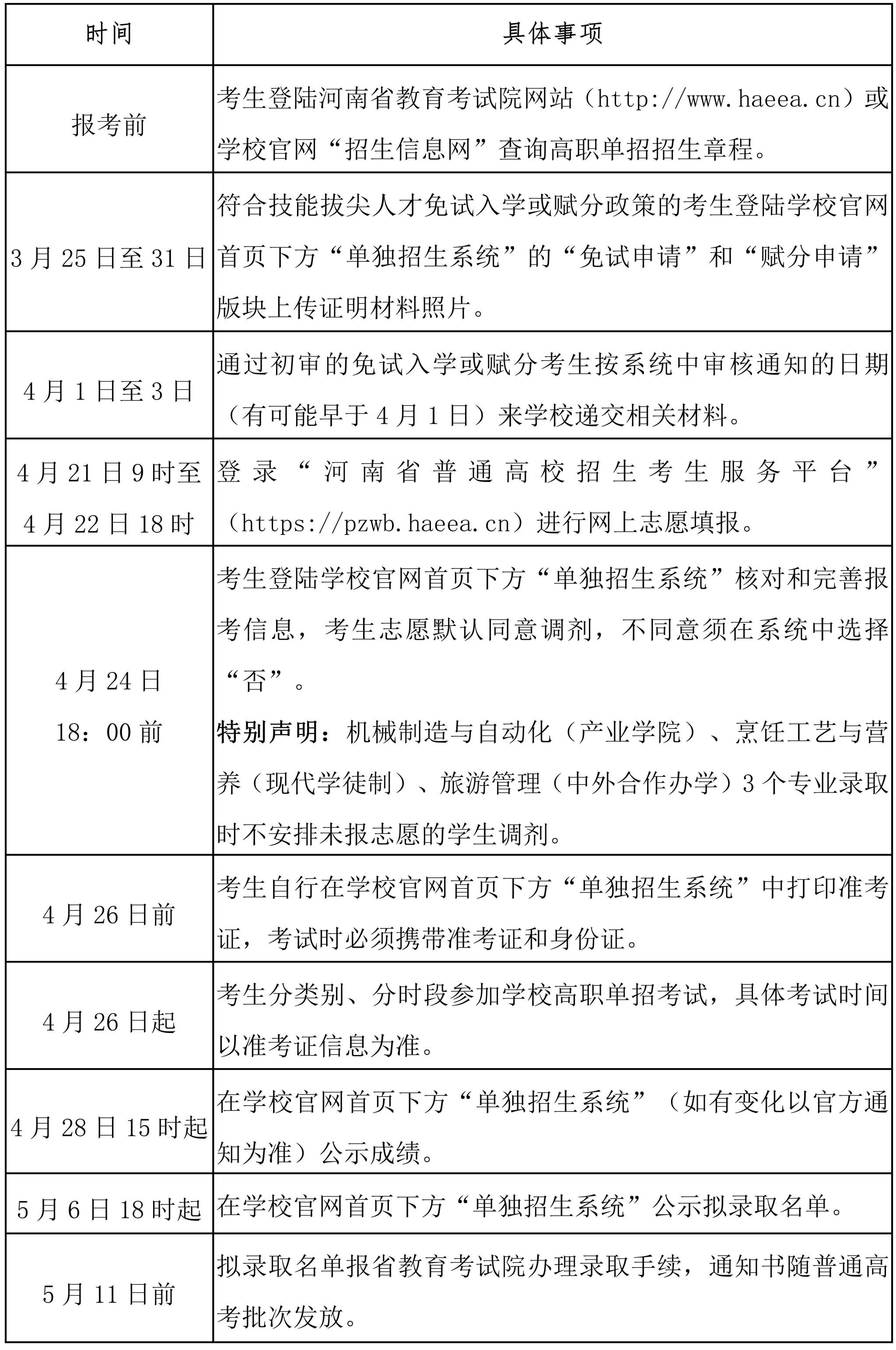 第二十九条 高职单招主要工作时间安排见下表: