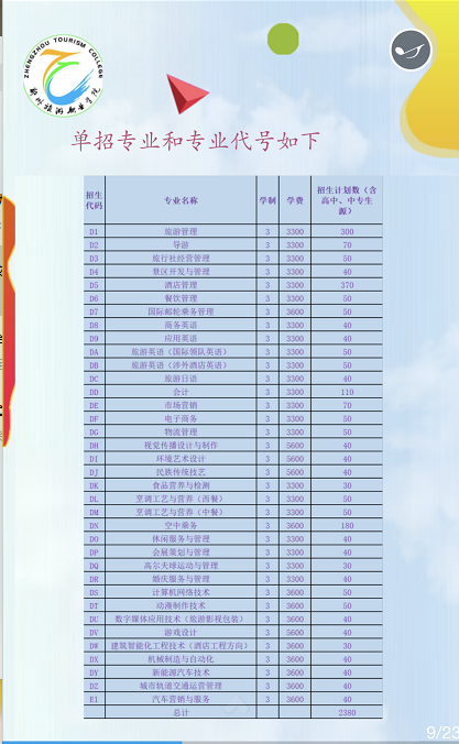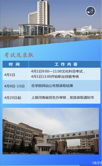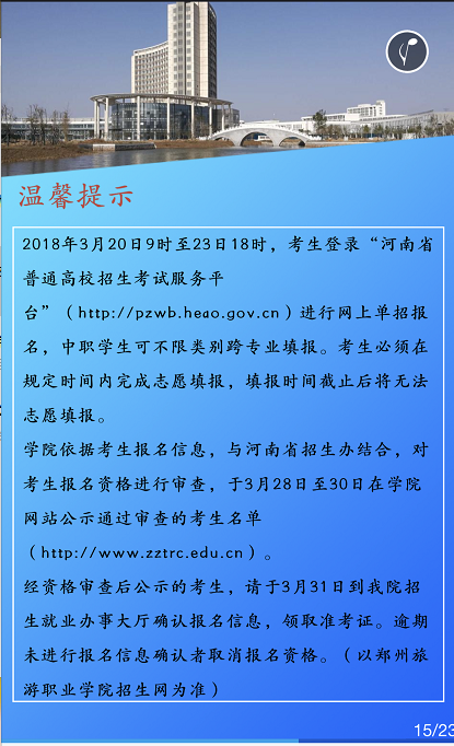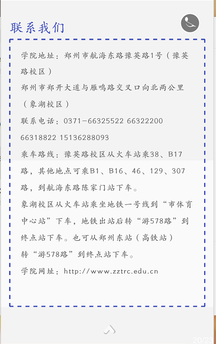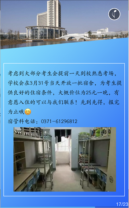 联系电话:0371-61130064 / 61130065(招生办) 邮编:451464