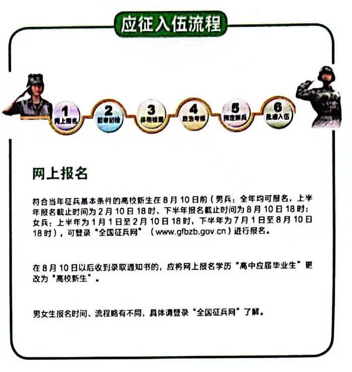 1.应征地:高校新生应当在户籍所在地参加应征;高校应届毕业生和在校生可在学校所在地参加应征,也可在入学前户籍所在地参加应征。