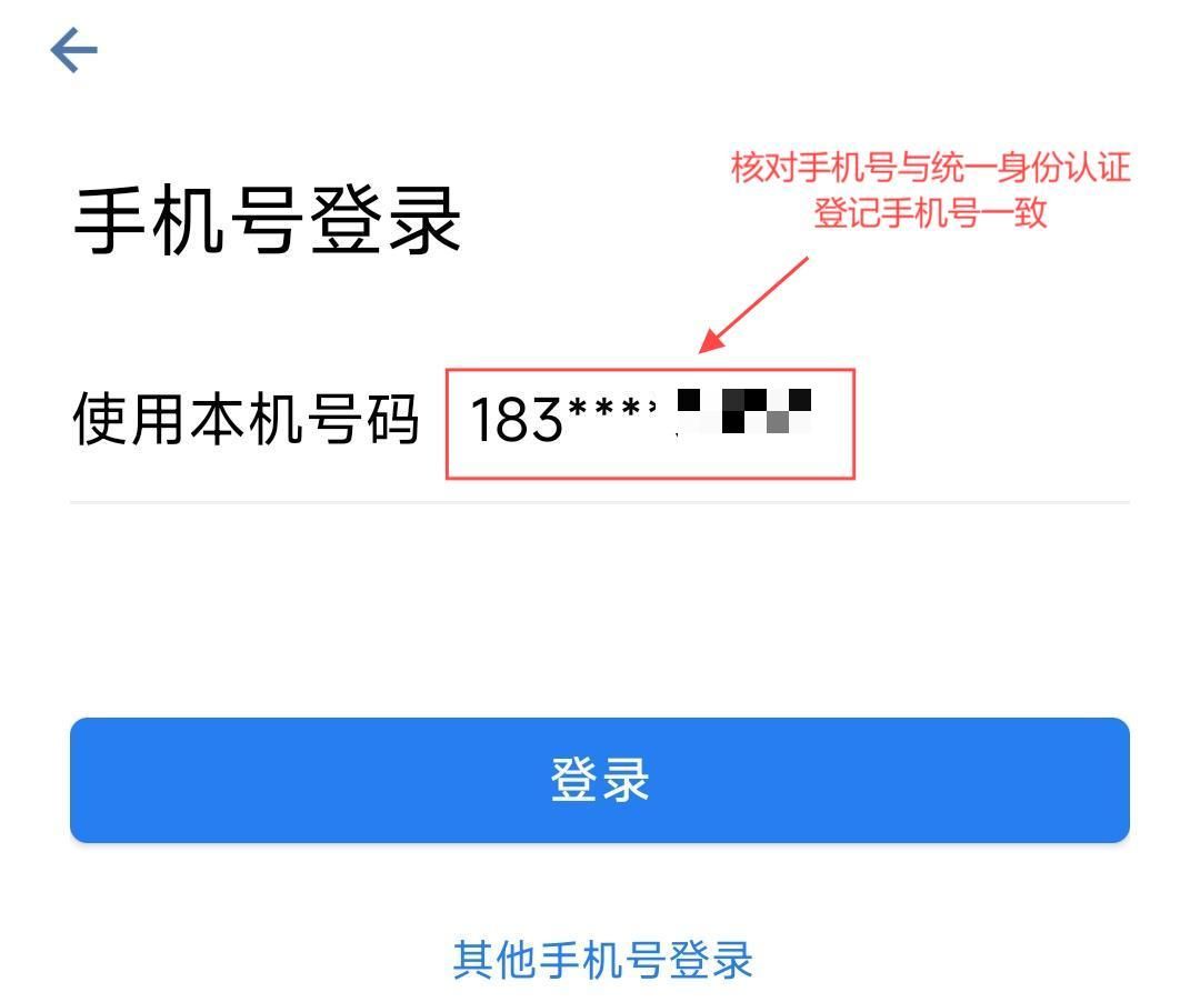 输入注册统一身份认证时留存的手机号