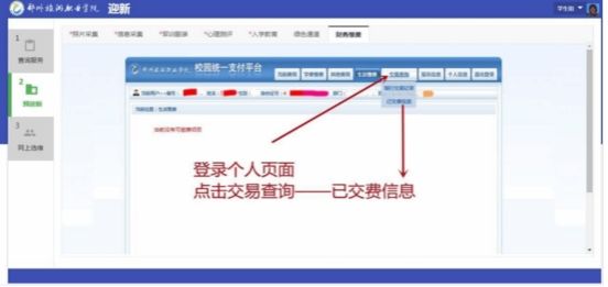 如需查询已缴费情况及下载电子发票,可以按以下步骤操作:点击导航栏中【交易查询】-【已交费信息】,点击对应收费单后面的【明细】可以查看已交费内容,点击票据查询对应的按钮,可以查看或下载电子票据。