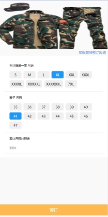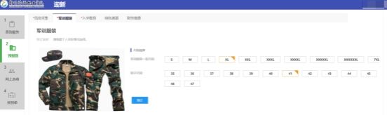 新生可以提前登记个人军训服装尺码,填写完成后进入下一环节。