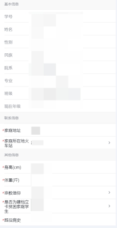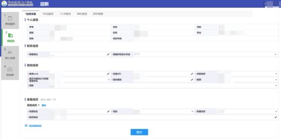 新生对信息进行填写校核,提交后才能进行后续环节,红色*为必填项,请认真核对信息;