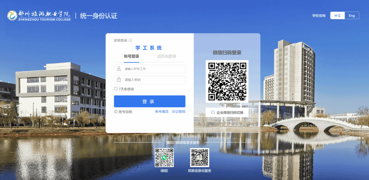 或通过手机浏览器访问网址http://xg.zztrc.edu.cn/xgfw/sys/swmyxapp/*default/index.do,打开登陆页面,输入个人统一身份认证账号密码完成登录;